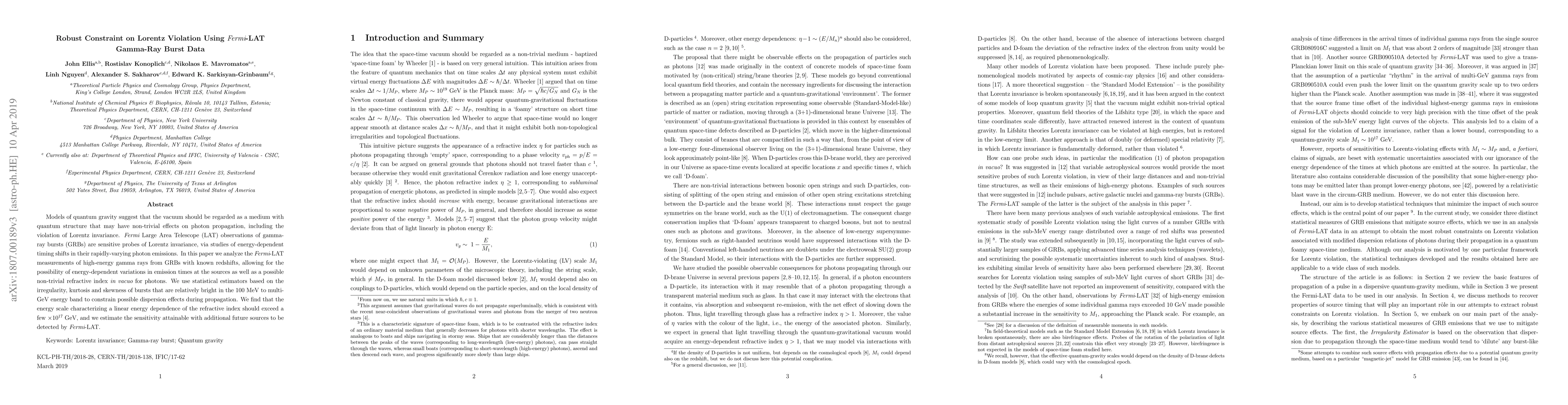 This paper uses Fermi-LAT data from gamma-ray bursts to constrain Lorentz violation in quantum gravity models, finding that any energy-dependent refractive index must exceed $10^{17}$ GeV. Future Fermi-LAT observations could potentially improve these constraints.