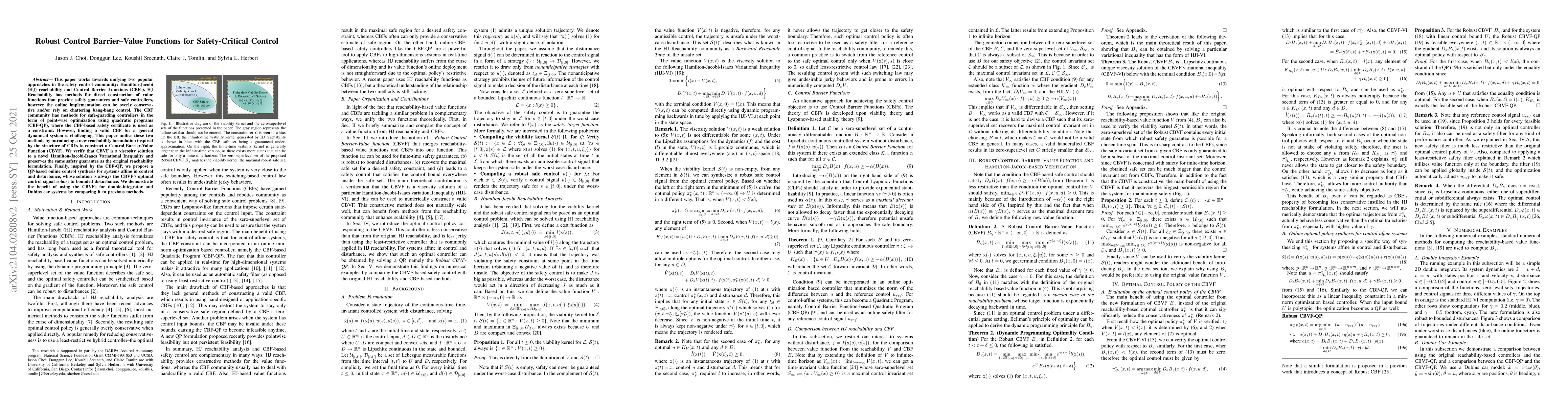 This paper works towards unifying two popular approaches in the safety control community: Hamilton-Jacobi (HJ) reachability and Control Barrier Functions (CBFs). HJ Reachability has methods for direct construction of value functions that provide safety guarantees and safe controllers, however the online implementation can be overly conservative and/or rely on chattering bang-bang control. The CBF community has methods for safe-guarding controllers in the form of point-wise optimization using quadratic programs (CBF-QP), where the CBF-based safety certificate is used as a constraint. However, finding a valid CBF for a general dynamical system is challenging. This paper unifies these two methods by introducing a new reachability formulation inspired by the structure of CBFs to construct a Control Barrier-Value Function (CBVF). We verify that CBVF is a viscosity solution to a novel Hamilton-Jacobi-Isaacs Variational Inequality and preserves the same safety guarantee as the original reachability formulation. Finally, inspired by the CBF-QP, we propose a QP-based online control synthesis for systems affine in control and disturbance, whose solution is always the CBVF's optimal control signal robust to bounded disturbance. We demonstrate the benefit of using the CBVFs for double-integrator and Dubins car systems by comparing it to previous methods.