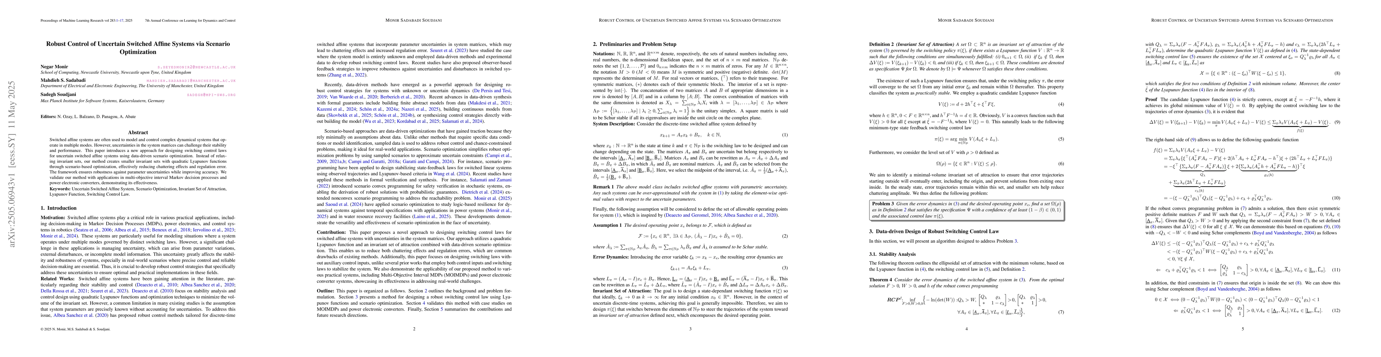 The paper presents a scenario optimization framework for robust control of uncertain switched affine systems, effectively reducing chattering and regulation errors.