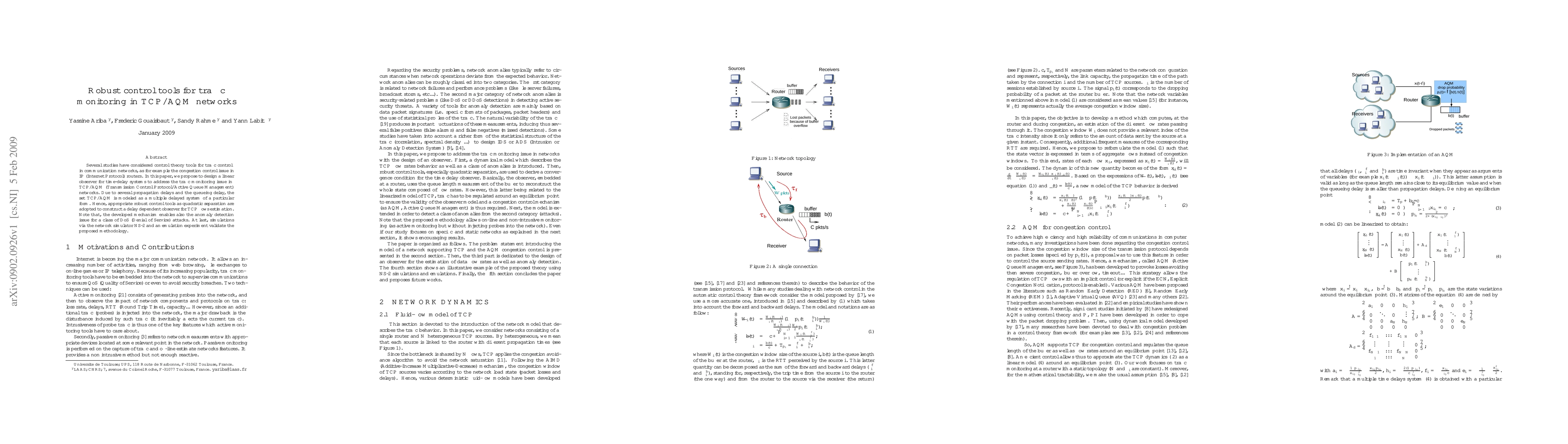 Several studies have considered control theory tools for traffic control in communication networks, as for example the congestion control issue in IP (Internet Protocol) routers. In this paper, we propose to design a linear observer for time-delay systems to address the traffic monitoring issue in TCP/AQM (Transmission Control Protocol/Active Queue Management) networks. Due to several propagation delays and the queueing delay, the set TCP/AQM is modeled as a multiple delayed system of a particular form. Hence, appropriate robust control tools as quadratic separation are adopted to construct a delay dependent observer for TCP flows estimation. Note that, the developed mechanism enables also the anomaly detection issue for a class of DoS (Denial of Service) attacks. At last, simulations via the network simulator NS-2 and an emulation experiment validate the proposed methodology.