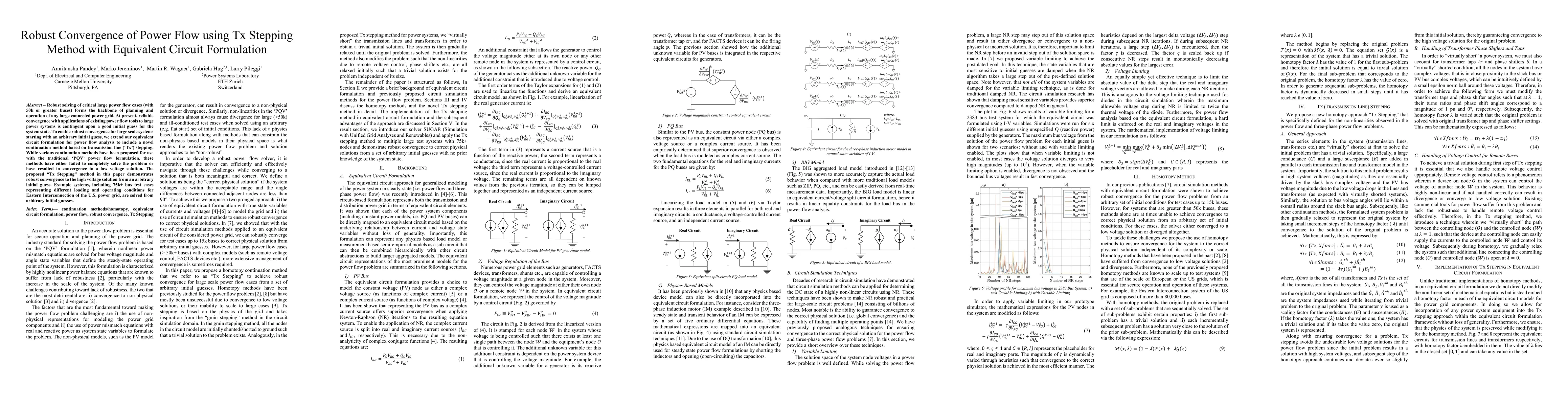 This paper proposes a robust convergence method for large power flow problems using a Tx stepping method with an equivalent circuit formulation. The novel approach ensures reliable convergence to high voltage solutions from arbitrary initial guesses, addressing the limitations of existing continuation methods.