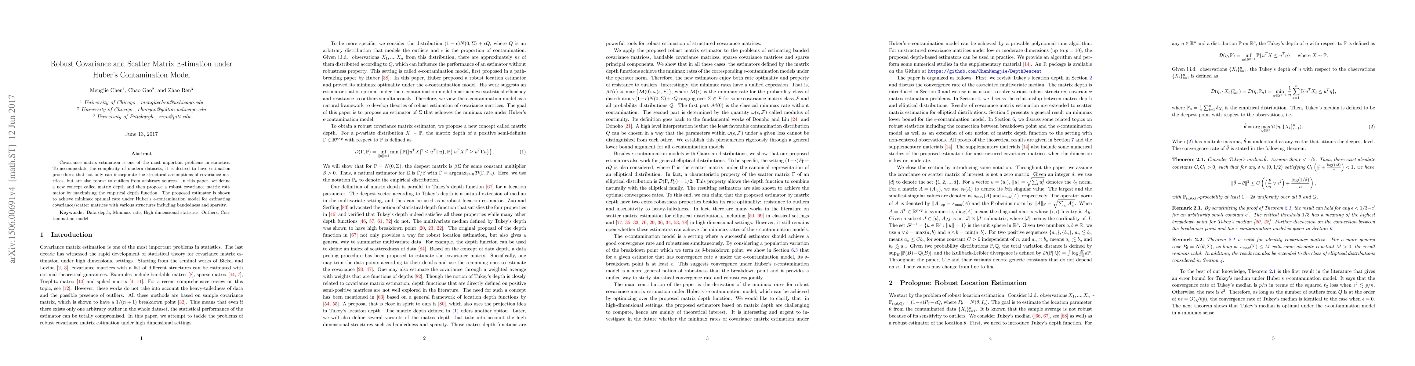 This paper introduces a robust covariance matrix estimator based on a new matrix depth concept, achieving minimax optimal rates under Huber's $\epsilon$-contamination model. The proposed estimator is designed to handle outliers and accommodate various structural assumptions of covariance matrices, including bandedness and sparsity.