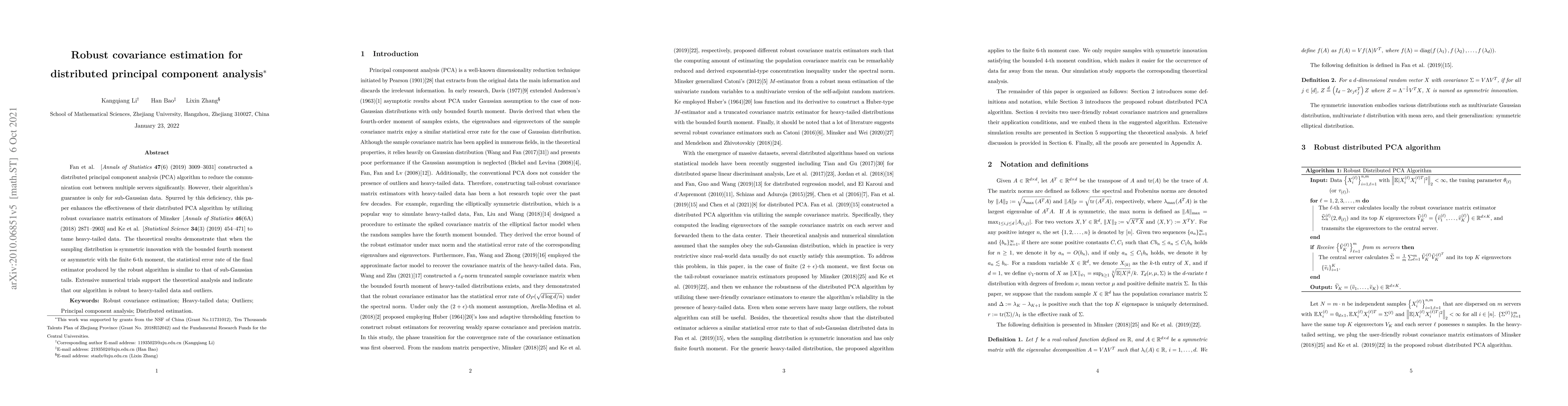 This paper enhances a distributed PCA algorithm to handle heavy-tailed data by incorporating robust covariance matrix estimators, achieving similar statistical error rates to sub-Gaussian data. Theoretical and numerical results confirm the robustness of the algorithm against outliers and heavy-tailed distributions.