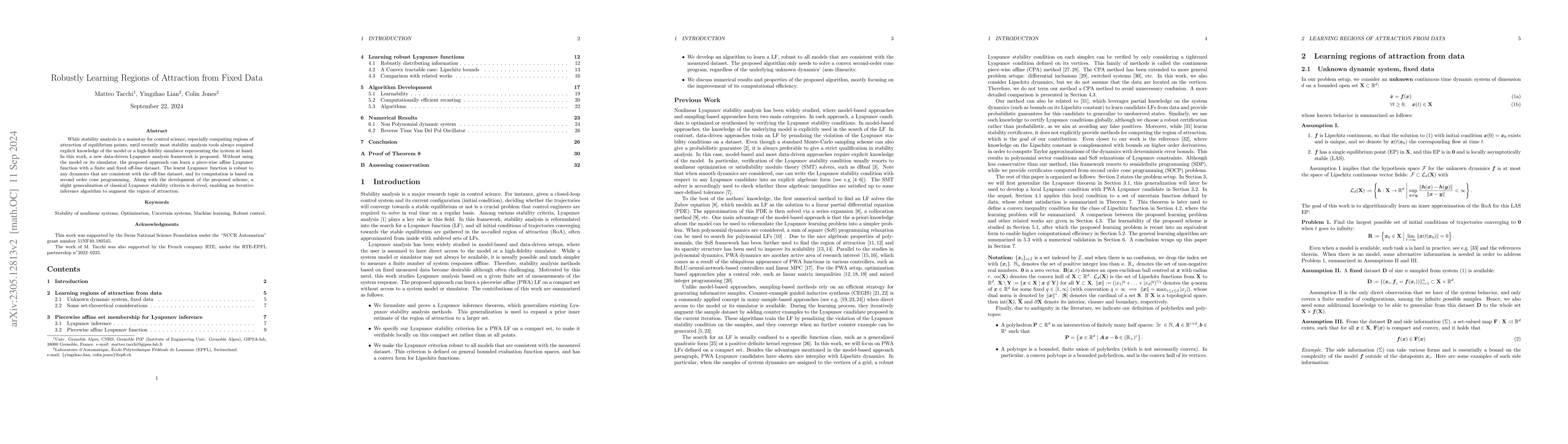 This paper proposes a novel data-driven Lyapunov analysis framework that learns a piece-wise affine Lyapunov function from a fixed off-line dataset without requiring explicit model knowledge. The developed approach is robust to any dynamics consistent with the dataset, and it generalizes the Lyapunov stability criterion to iteratively expand the region of attraction.