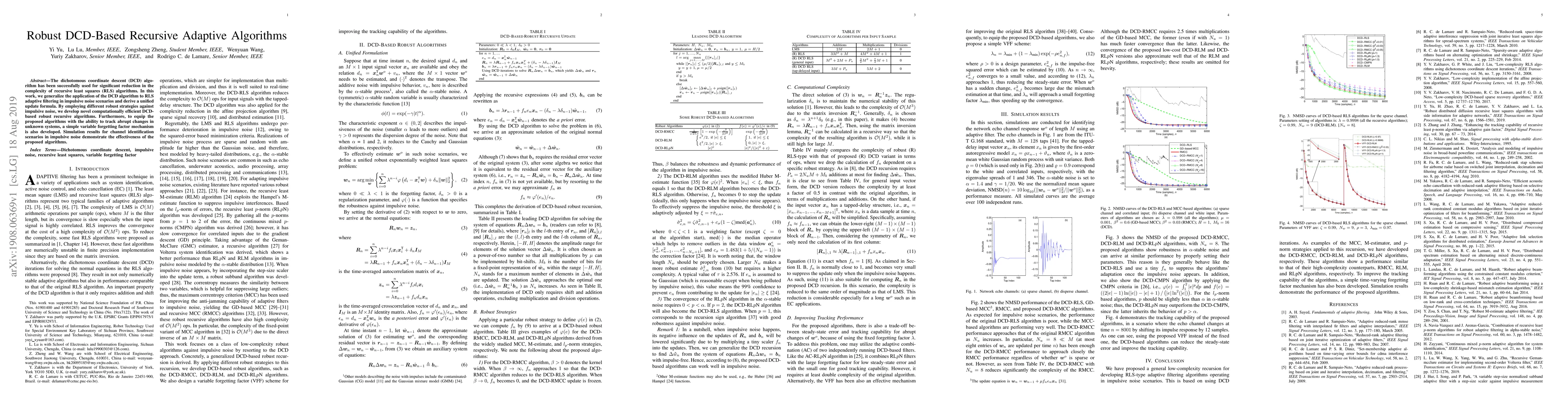 This paper generalizes the dichotomous coordinate descent (DCD) algorithm for recursive least squares (RLS) adaptive filtering in impulsive noise, developing robust and efficient algorithms. It also introduces a variable forgetting factor to track system changes, demonstrating effectiveness through channel identification simulations.