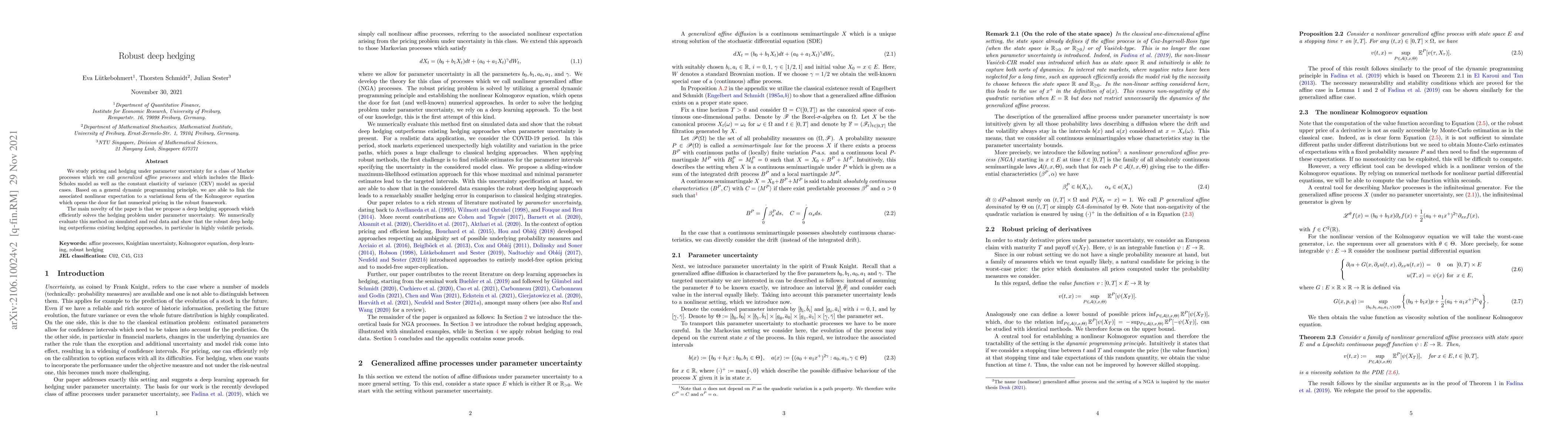 This paper proposes a deep hedging approach for pricing and hedging under parameter uncertainty for generalized affine processes, including the Black-Scholes and CEV models. The method efficiently solves the hedging problem and outperforms existing methods, especially in volatile market conditions, as demonstrated through numerical evaluations on simulated and real data.