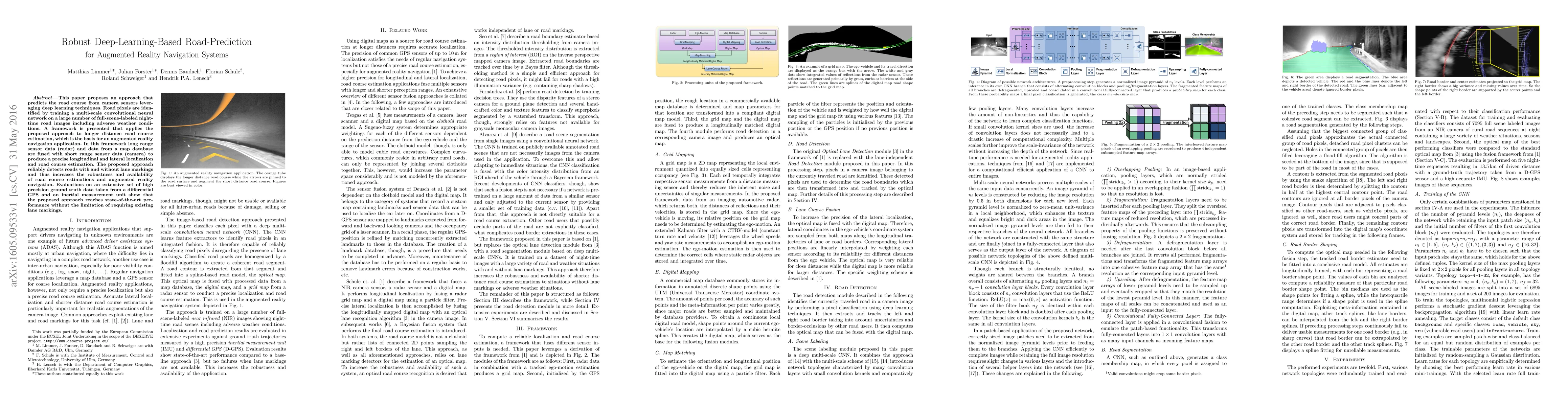 This paper introduces a deep learning method using camera sensor data to predict road courses, even in adverse weather and without lane markings. The approach, tested extensively with GPS and IMU data, demonstrates robust performance for augmented reality navigation systems.