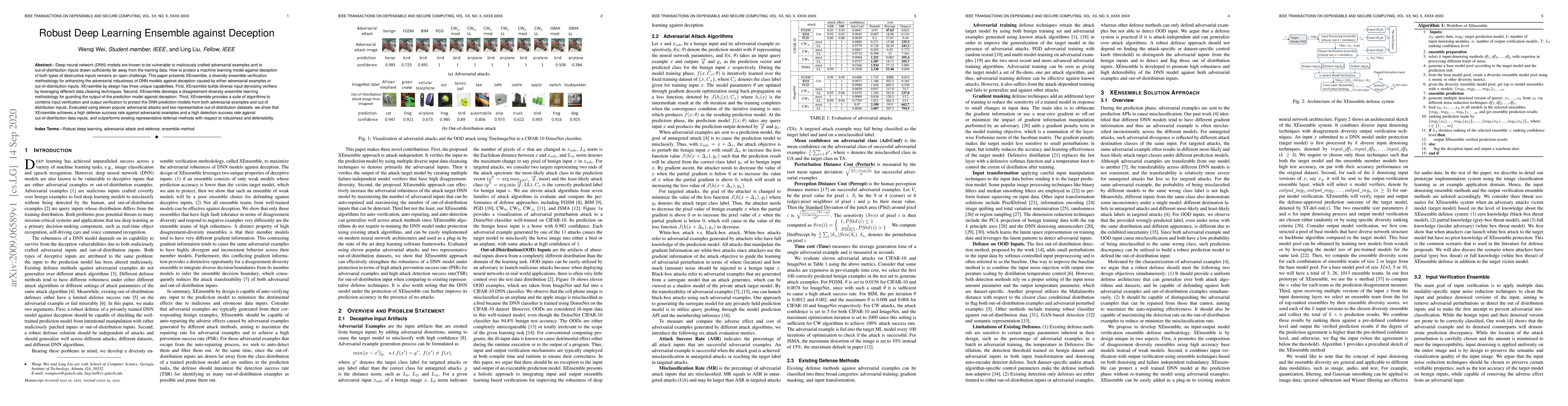 A new ensemble method called XEnsemble improves deep learning model robustness against adversarial examples and out-of-distribution inputs by combining diverse input verification and output verification methods.