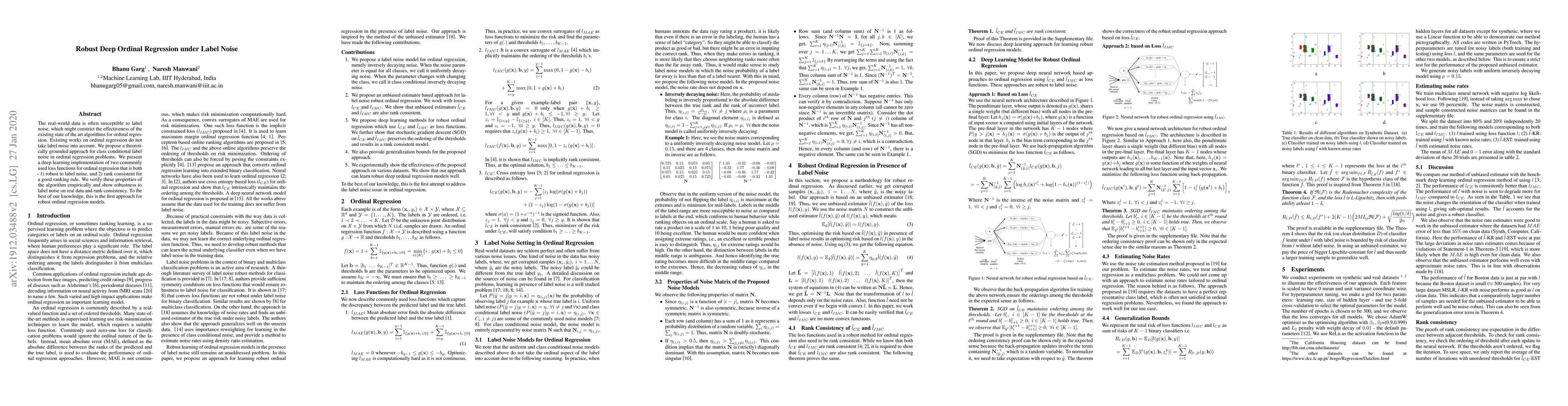 This paper introduces a novel deep learning method for robust ordinal regression under label noise, employing theoretically grounded approaches and two common loss functions. The proposed model demonstrates robustness to label noise and rank consistency, marking the first attempt at such a problem in ordinal regression.