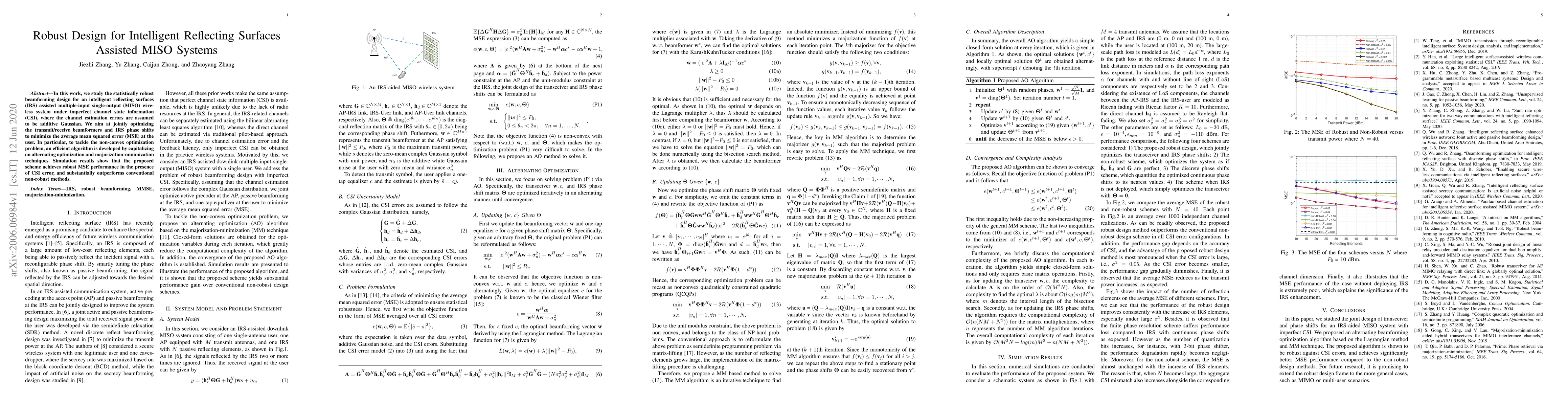 This paper proposes a robust beamforming design for MISO systems aided by intelligent reflecting surfaces (IRS), optimizing transmit/receive beamformers and IRS phase shifts to minimize average mean squared error (MSE) under imperfect channel state information. An efficient algorithm using alternating optimization and majorization-minimization techniques is developed to solve the non-convex problem, demonstrating superior performance compared to non-robust methods.