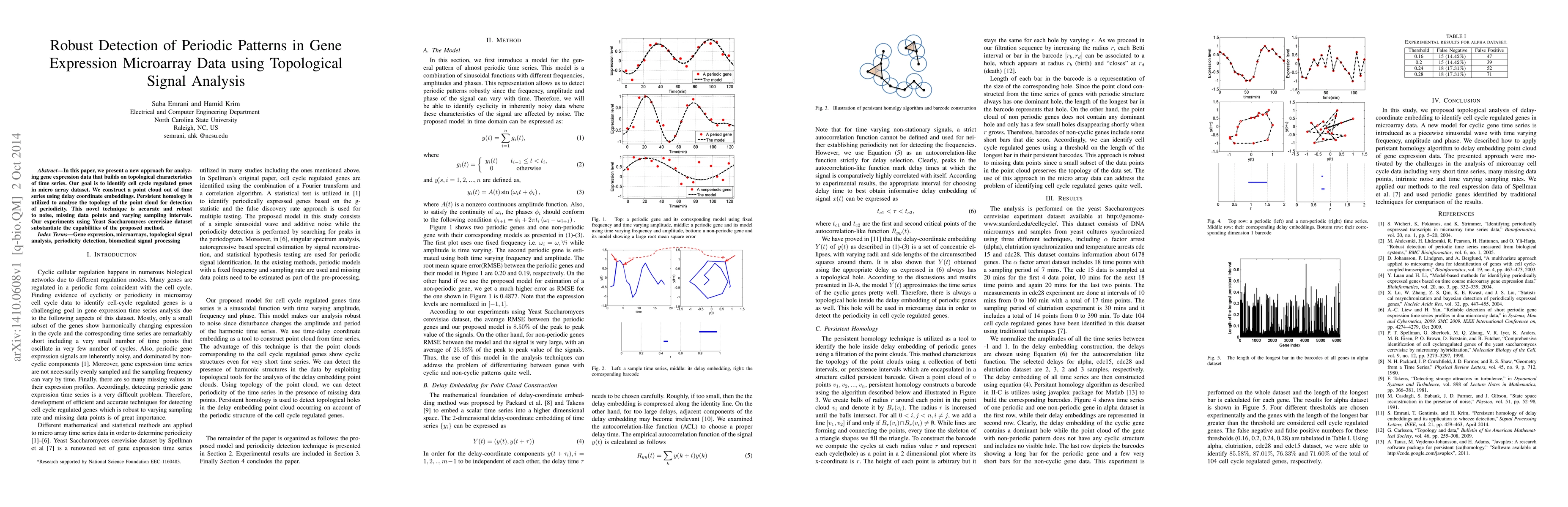 In this paper, we present a new approach for analyzing gene expression data that builds on topological characteristics of time series. Our goal is to identify cell cycle regulated genes in micro array dataset. We construct a point cloud out of time series using delay coordinate embeddings. Persistent homology is utilized to analyse the topology of the point cloud for detection of periodicity. This novel technique is accurate and robust to noise, missing data points and varying sampling intervals. Our experiments using Yeast Saccharomyces cerevisiae dataset substantiate the capabilities of the proposed method.