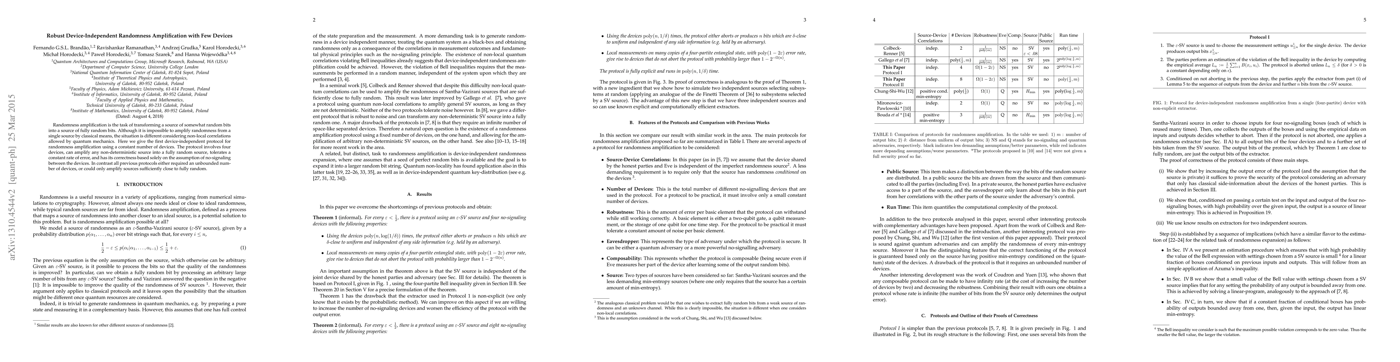 This paper presents a novel device-independent protocol for amplifying randomness using only four devices, transforming any non-deterministic source into a fully random output, while tolerating a constant error rate. Unlike previous methods, this protocol does not require an unbounded number of devices.
