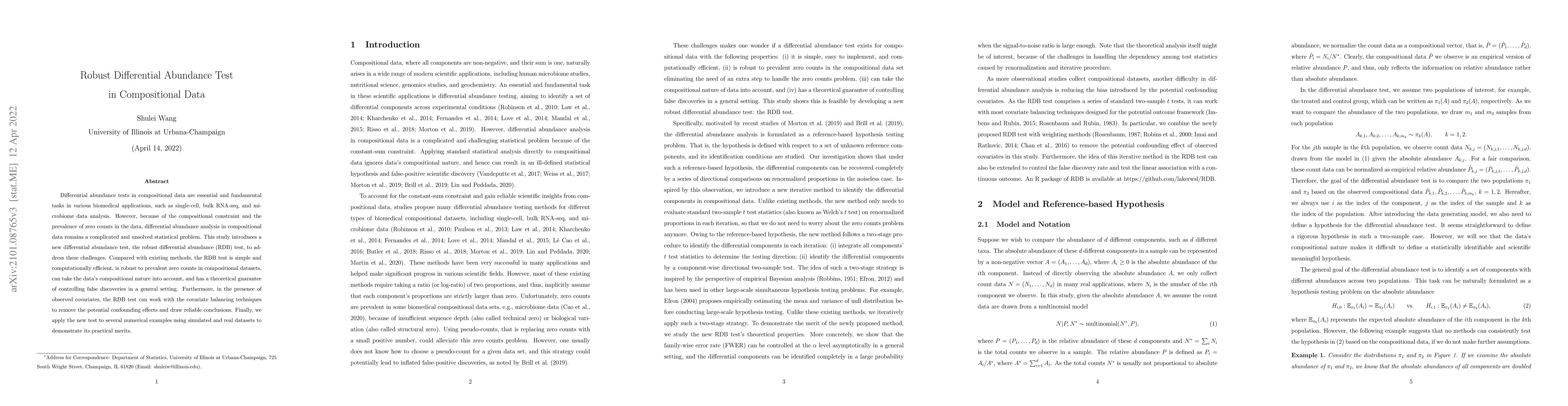 The research introduces a new differential abundance test, the Robust Differential Abundance (RDB) test, designed to address challenges in compositional data analysis, particularly in biomedical applications like single-cell RNA-seq, bulk RNA-seq, and microbiome data. The RDB test is simple, computationally efficient, robust to zero counts, considers the compositional nature of data, and has a theoretical guarantee of controlling false discoveries.