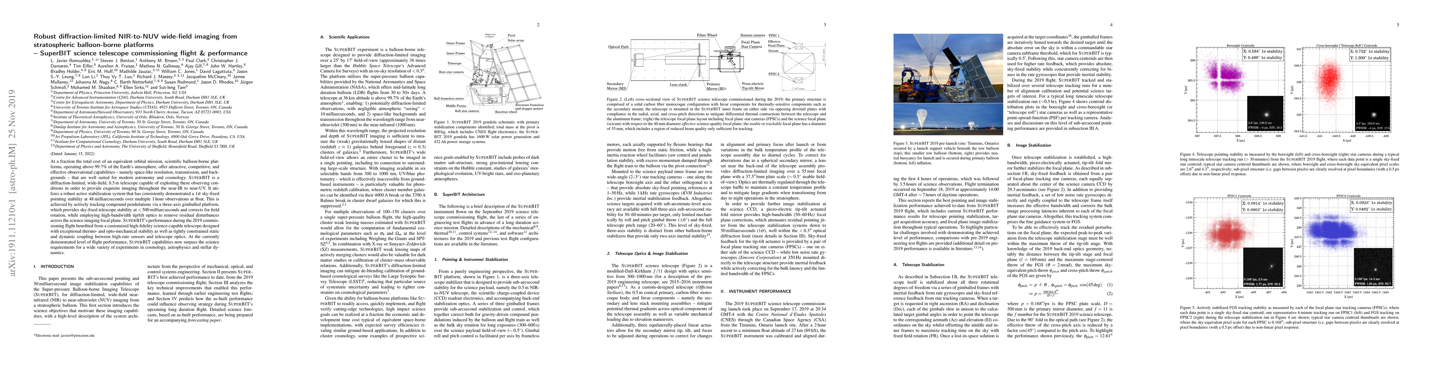 The SuperBIT telescope, deployed on a stratospheric balloon, offers diffraction-limited, wide-field imaging from near-IR to near-UV at a fraction of the cost of orbital missions. Its active stabilization system achieves sub-arcsecond pointing stability, enabling high-quality observations suitable for cosmology, astrophysics, and stellar dynamics.