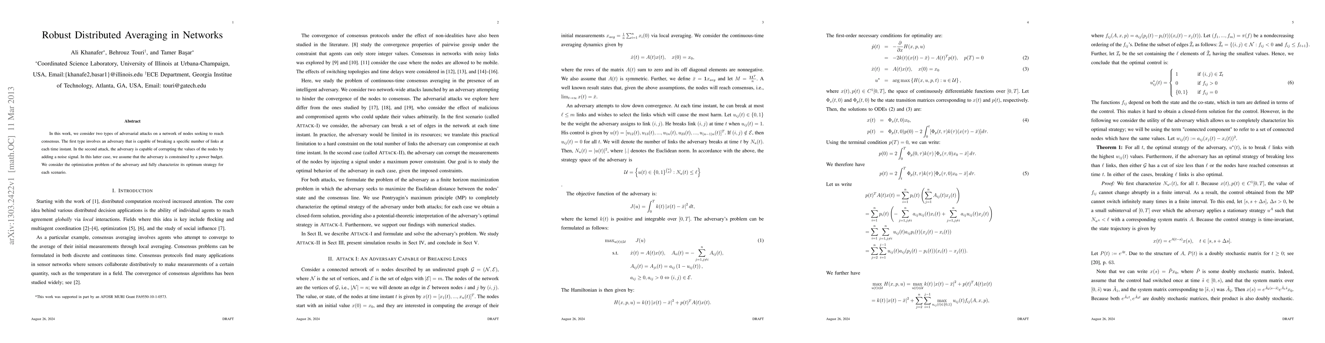 In this work, we consider two types of adversarial attacks on a network of nodes seeking to reach consensus. The first type involves an adversary that is capable of breaking a specific number of links at each time instant. In the second attack, the adversary is capable of corrupting the values of the nodes by adding a noise signal. In this latter case, we assume that the adversary is constrained by a power budget. We consider the optimization problem of the adversary and fully characterize its optimum strategy for each scenario.