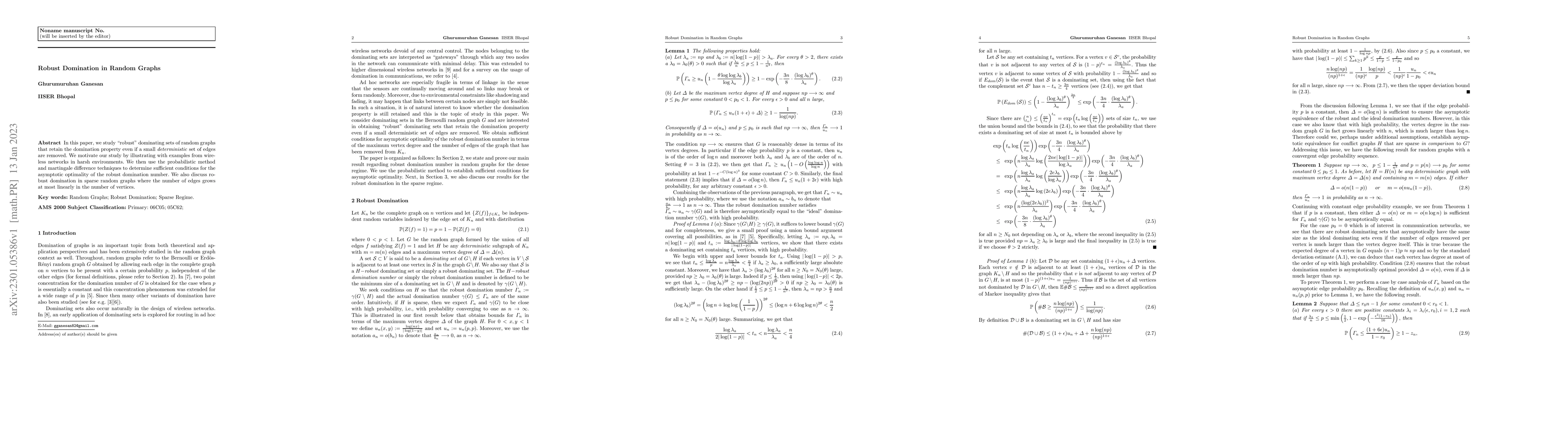 This paper explores "robust" dominating sets in random graphs that maintain their domination property despite the removal of a small deterministic subset of edges, motivated by applications in wireless networks. Using probabilistic methods and martingale difference techniques, it determines conditions for the asymptotic optimality of the robust domination number, particularly in sparse random graphs.