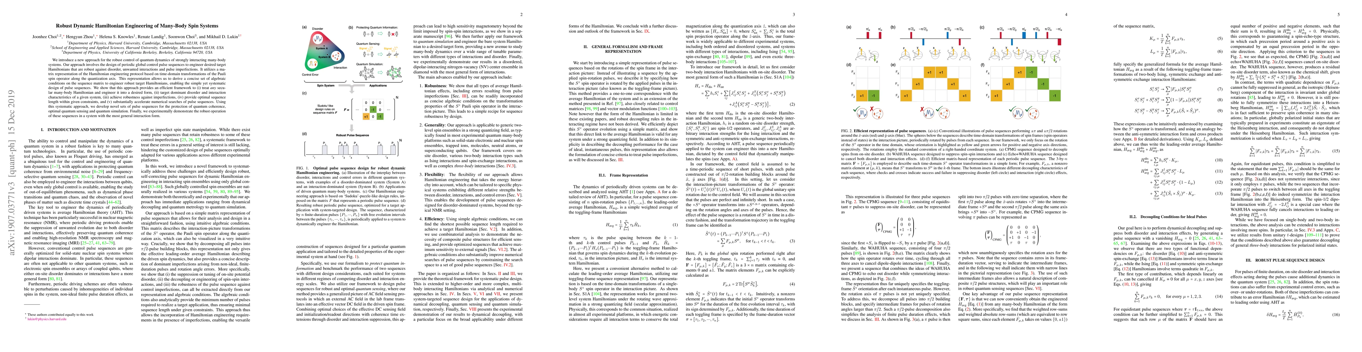 This paper presents a novel method for robust control of quantum dynamics in many-body spin systems using engineered periodic pulse sequences. The approach ensures robustness against disorder and imperfections, optimizes sequence length, and accelerates the search for effective pulses, demonstrating its efficacy in protecting quantum coherence and enhancing quantum simulation.