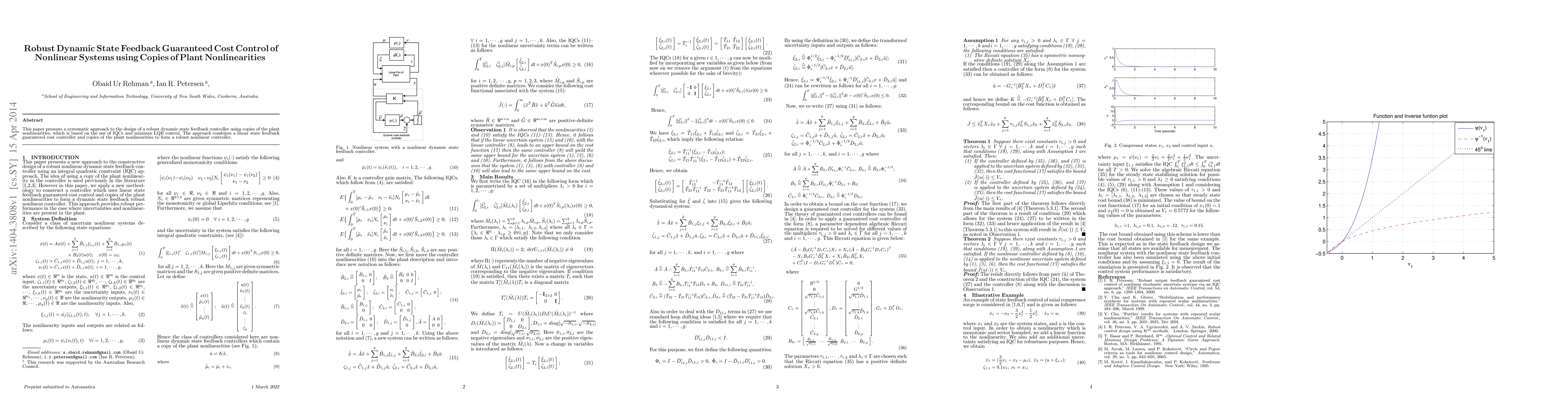 This paper designs a robust dynamic state feedback controller for nonlinear systems by incorporating copies of plant nonlinearities, utilizing IQCs and minimax LQR control, to achieve guaranteed cost performance. The method integrates a linear guaranteed cost controller with nonlinear components for enhanced robustness.