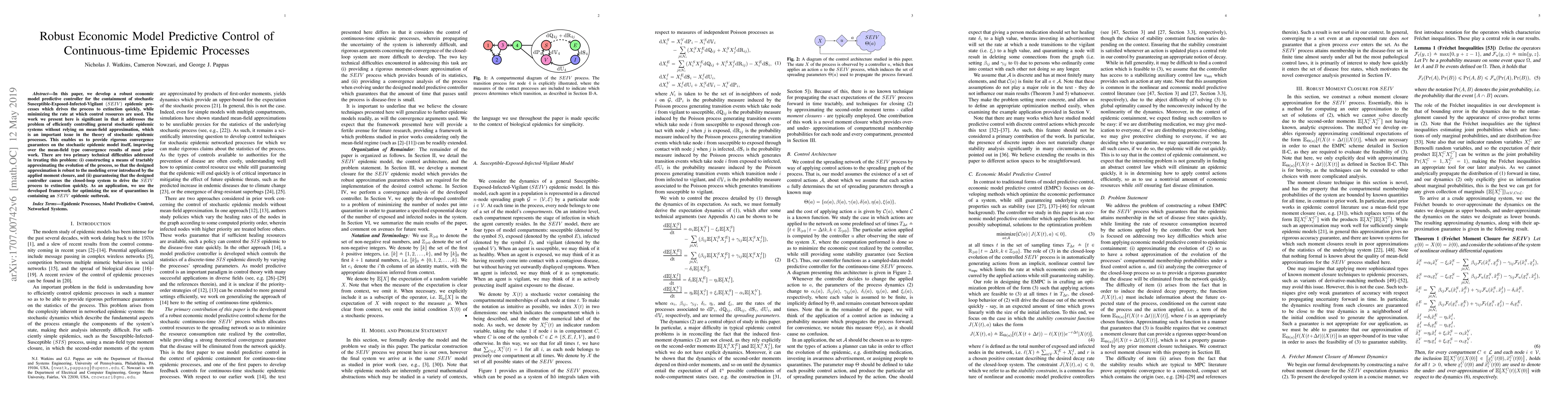 This paper proposes a robust economic model predictive controller for managing stochastic epidemic processes, specifically the SEIV model, aiming to quickly drive the process to extinction while minimizing control resource usage. It addresses technical challenges in approximating the process and ensuring effective extinction, offering rigorous convergence guarantees beyond mean-field approximations.