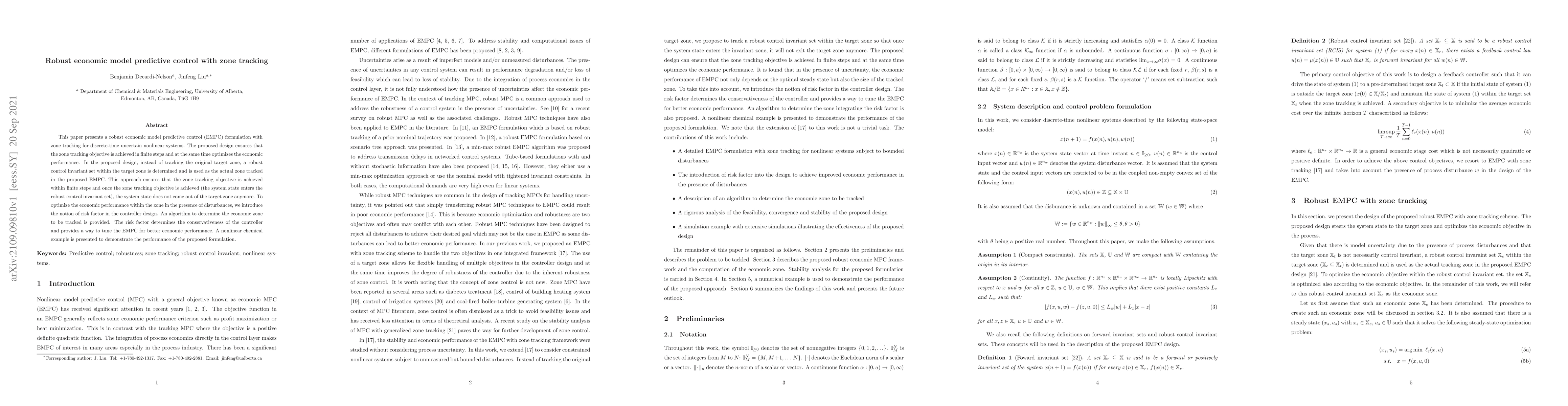 This paper proposes a robust economic model predictive control (EMPC) method for uncertain nonlinear systems that tracks a robust control invariant set within a target zone to ensure finite-step achievement and maintenance of zone tracking, while optimizing economic performance through a risk factor-based tuning approach. A nonlinear chemical example demonstrates the effectiveness of the proposed formulation.