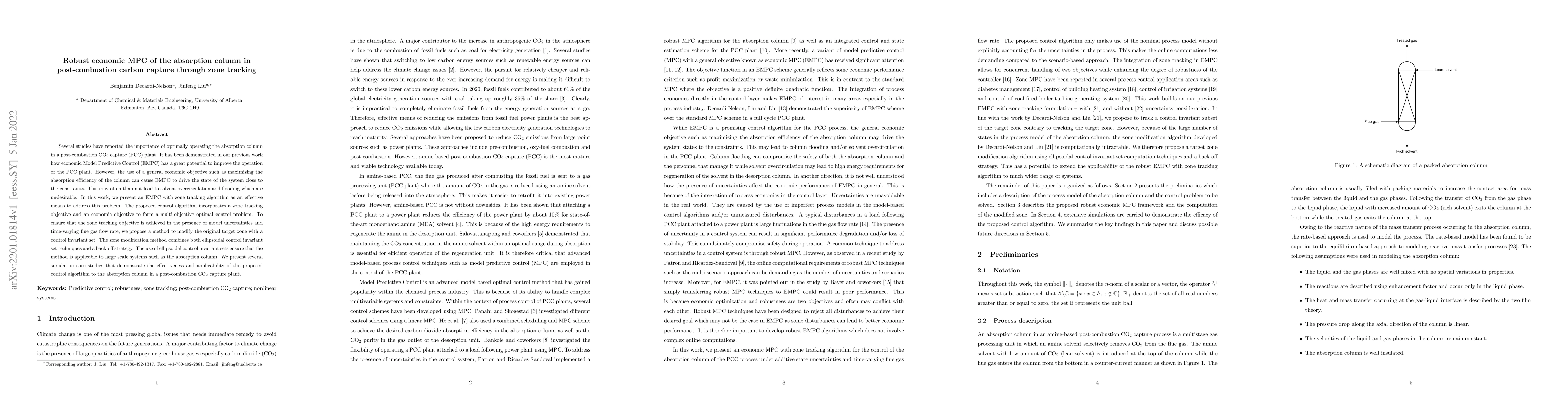 A new control algorithm is proposed to optimize the absorption column in post-combustion carbon capture plants, ensuring stable operation while maximizing efficiency and minimizing undesirable conditions such as solvent overcirculation and flooding.