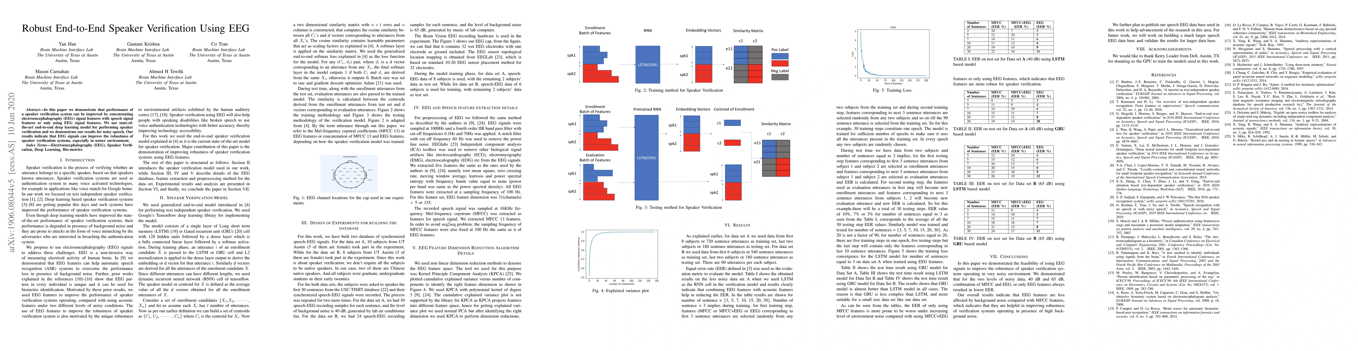 In this paper we demonstrate that performance of a speaker verification system can be improved by concatenating electroencephalography (EEG) signal features with speech signal features or only using EEG signal features. We use state-of-the-art end-to-end deep learning model for performing speaker verification and we demonstrate our results for noisy speech. Our results indicate that EEG signals can improve the robustness of speaker verification systems, especially in noiser environment.