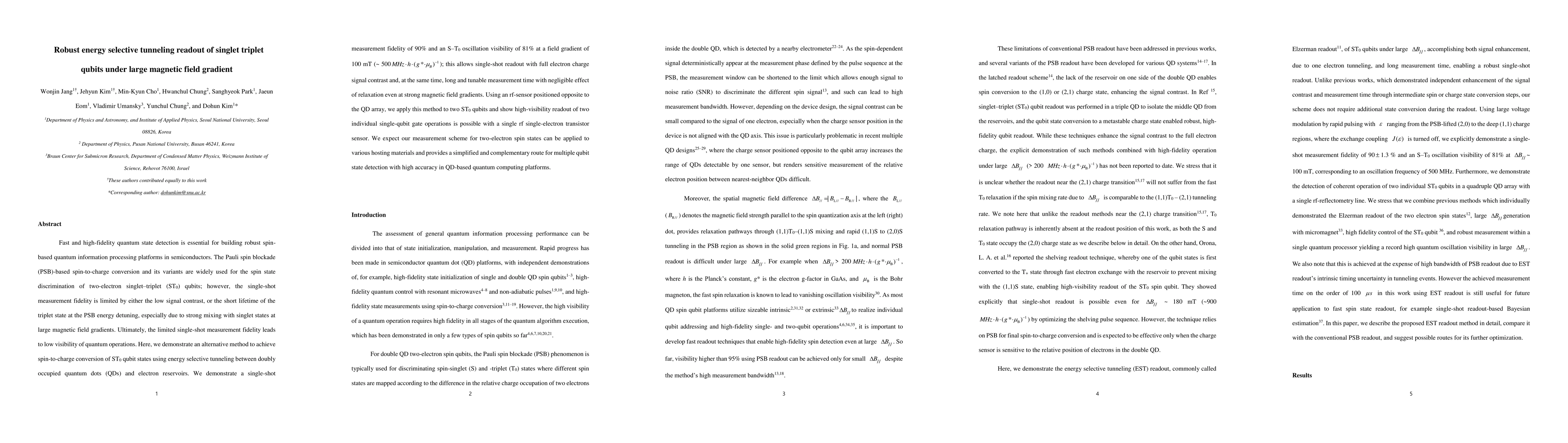 This paper presents a robust method for high-fidelity single-shot readout of singlet-triplet qubits in semiconductor quantum dots under large magnetic field gradients, achieving 90% fidelity and 81% visibility. The technique employs energy selective tunneling, offering full charge signal contrast and long, tunable measurement time with minimal relaxation effects.