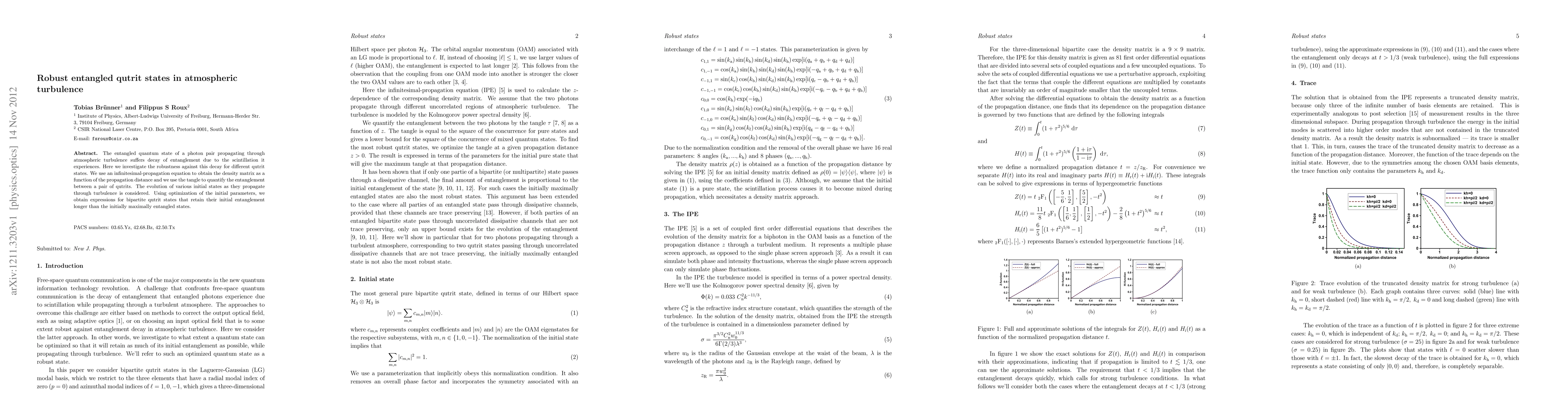 This paper explores how different entangled qutrit states maintain their entanglement when propagating through atmospheric turbulence. By employing an infinitesimal-propagation equation and the tangle metric, the authors find that certain optimized initial states retain their entanglement longer than maximally entangled states.