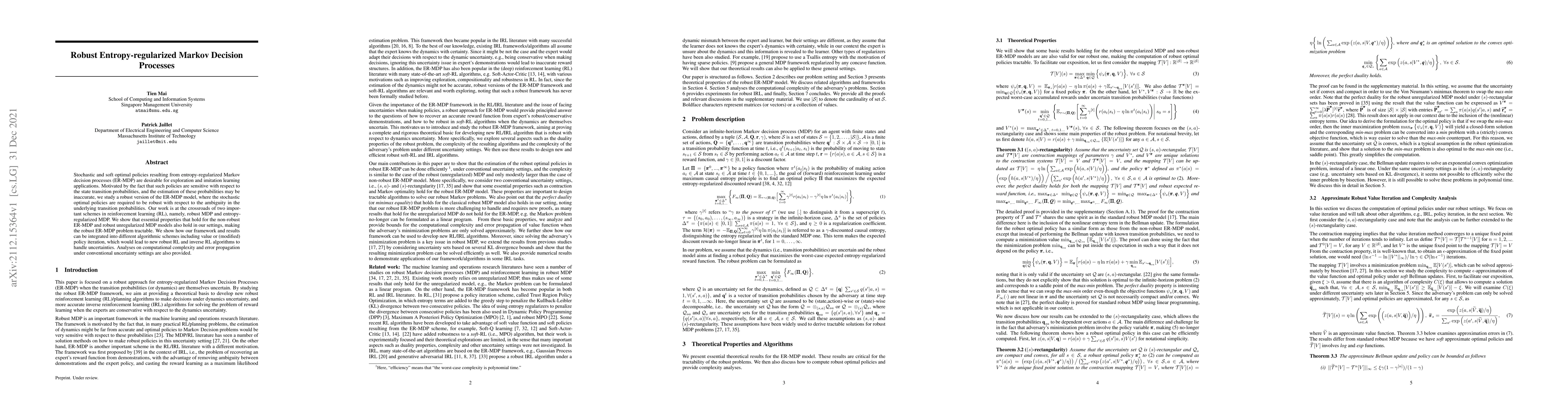 This paper proposes a robust version of entropy-regularized Markov decision processes (ER-MDP) to address inaccuracies in state transition probabilities, ensuring that stochastic optimal policies remain effective despite uncertainties. The study integrates robust MDP and entropy-regularized MDP frameworks, providing new algorithms for robust reinforcement learning and inverse reinforcement learning.