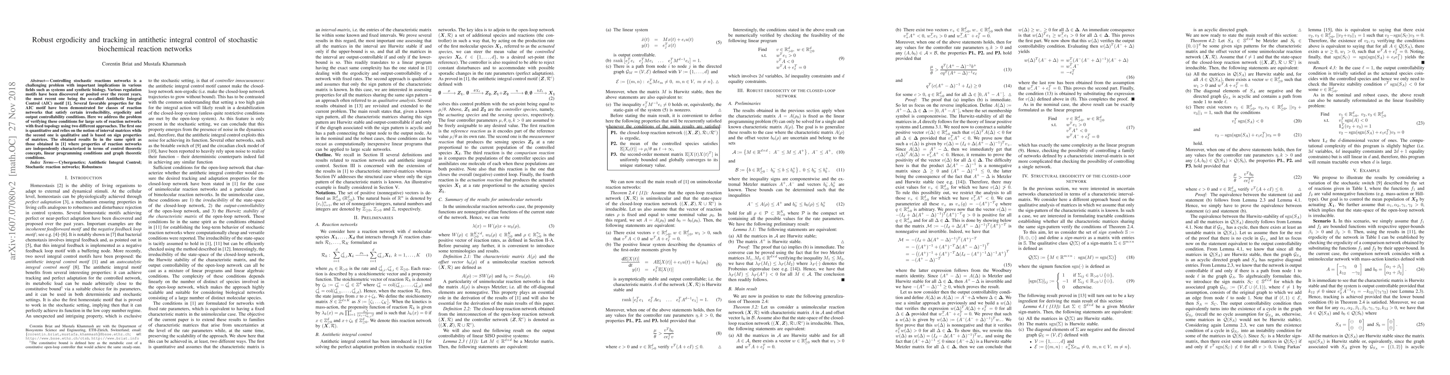 Controlling stochastic reactions networks is a challenging problem with important implications in various fields such as systems and synthetic biology. Various regulation motifs have been discovered or posited over the recent years, the most recent one being the so-called Antithetic Integral Control (AIC) motif in Briat et al. (Cell Systems, 2016). Several favorable properties for the AIC motif have been demonstrated for classes of reaction networks that satisfy certain irreducibility, ergodicity and output controllability conditions. Here we address the problem of verifying these conditions for large sets of reaction networks with fixed topology using two different approaches. The first one is quantitative and relies on the notion of interval matrices while the second one is qualitative and is based on sign properties of matrices. The obtained results lie in the same spirit as those obtained in Briat et al. (Cell Systems, 2016) where properties of reaction networks are independently characterized in terms of control theoretic concepts, linear programming conditions and graph theoretic conditions.