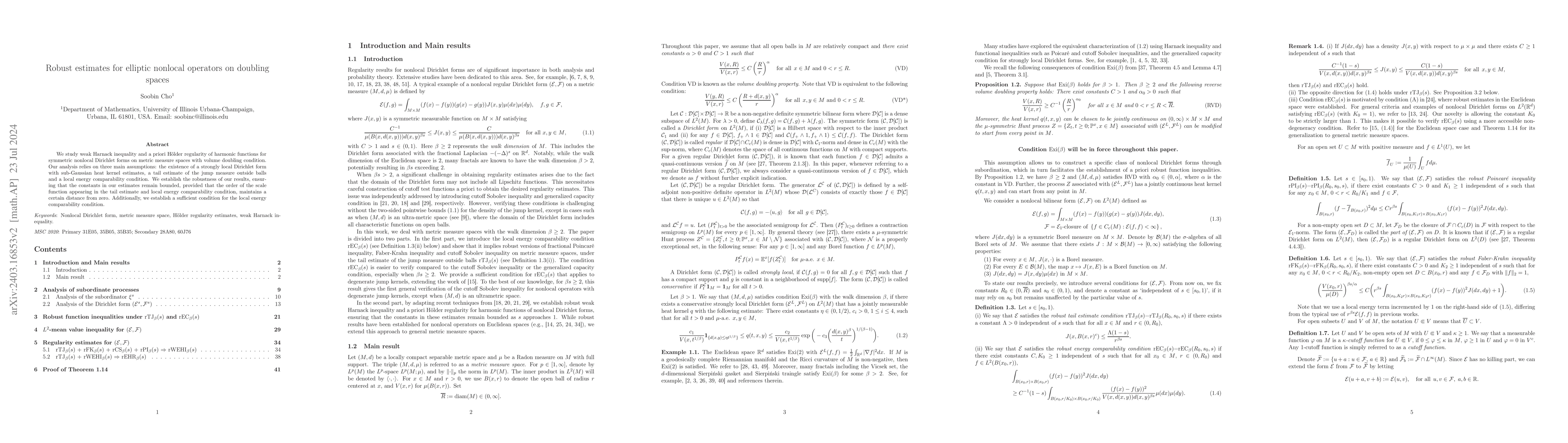 This paper investigates the weak Harnack inequality and H\"older regularity for harmonic functions in nonlocal elliptic operators on metric measure spaces, under assumptions involving heat kernel estimates, jump measure tails, and local energy comparability. It demonstrates the robustness of these results by showing that the constants in the estimates remain bounded as long as certain conditions on scale functions are satisfied.