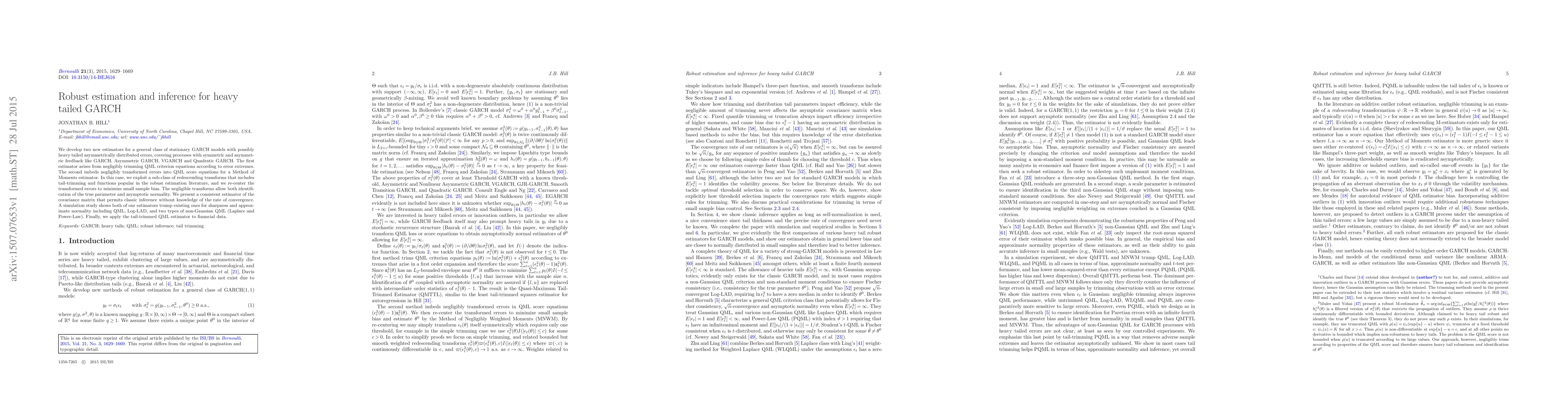 This paper proposes two new robust estimators for GARCH models with heavy-tailed errors, showing improved performance over existing methods through simulation and financial data analysis. The estimators utilize negligible trimming and transformed errors to achieve identification and asymptotic normality.