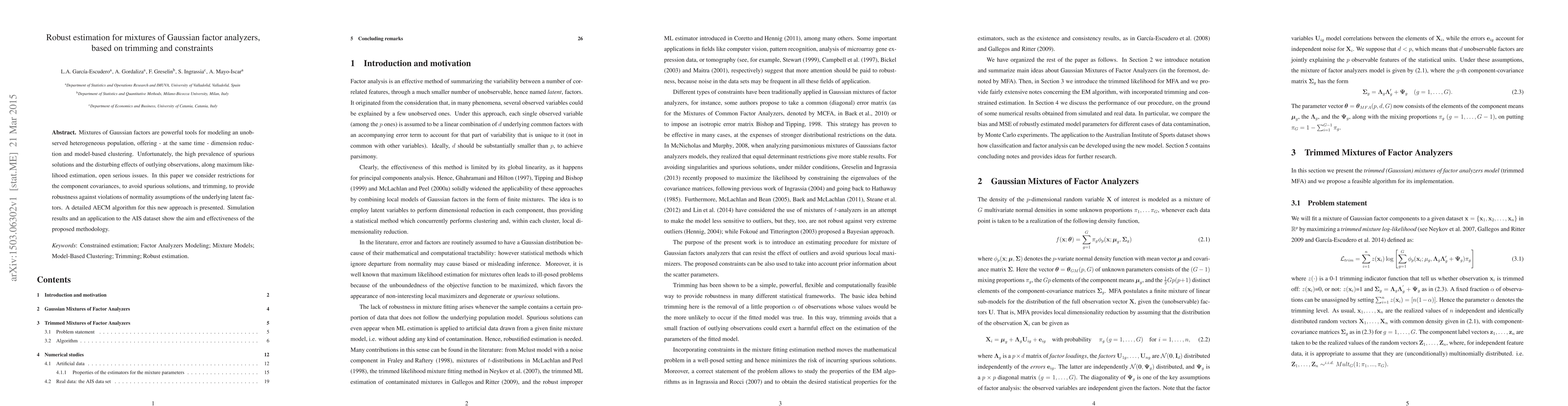 The research uses mixtures of Gaussian factor analyzers with trimming and constraints to estimate robustly.