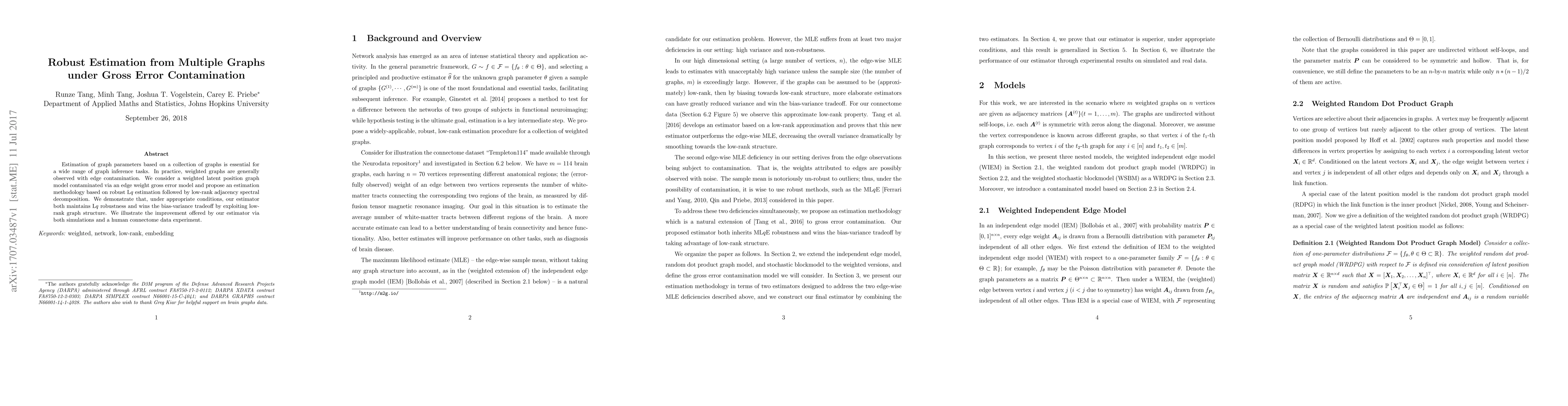This paper proposes a robust estimation method for graph parameters from multiple contaminated graphs using Lq estimation and low-rank spectral decomposition. The method maintains robustness to gross errors and improves the bias-variance tradeoff, demonstrated through simulations and a human connectome data experiment.