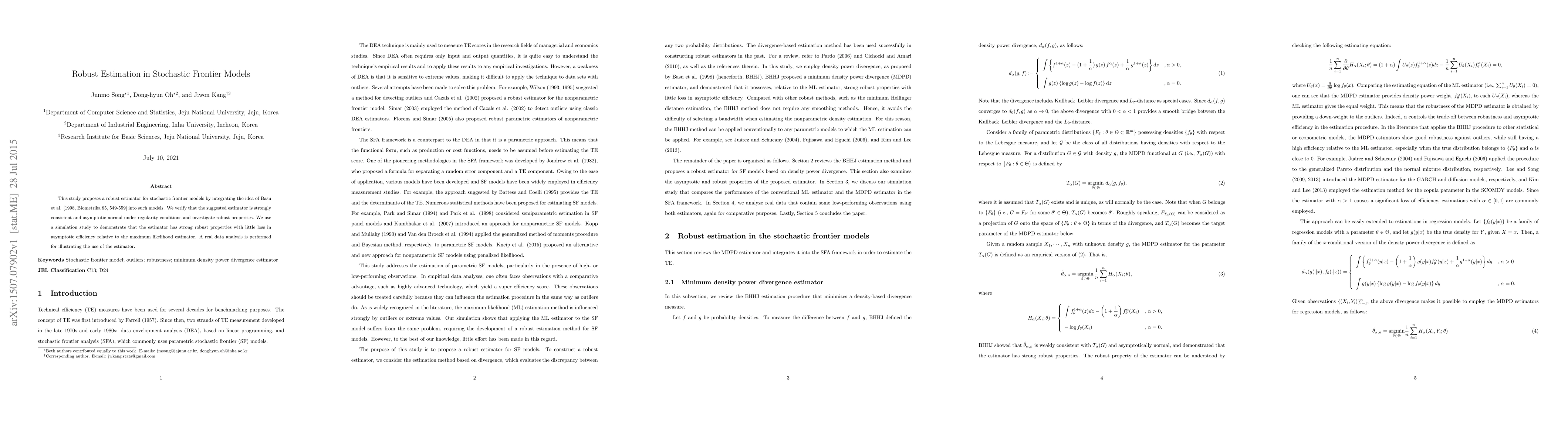 This study introduces a robust estimator for stochastic frontier models that maintains efficiency while reducing bias under non-normality, demonstrating strong consistency and asymptotic normality through simulation studies.