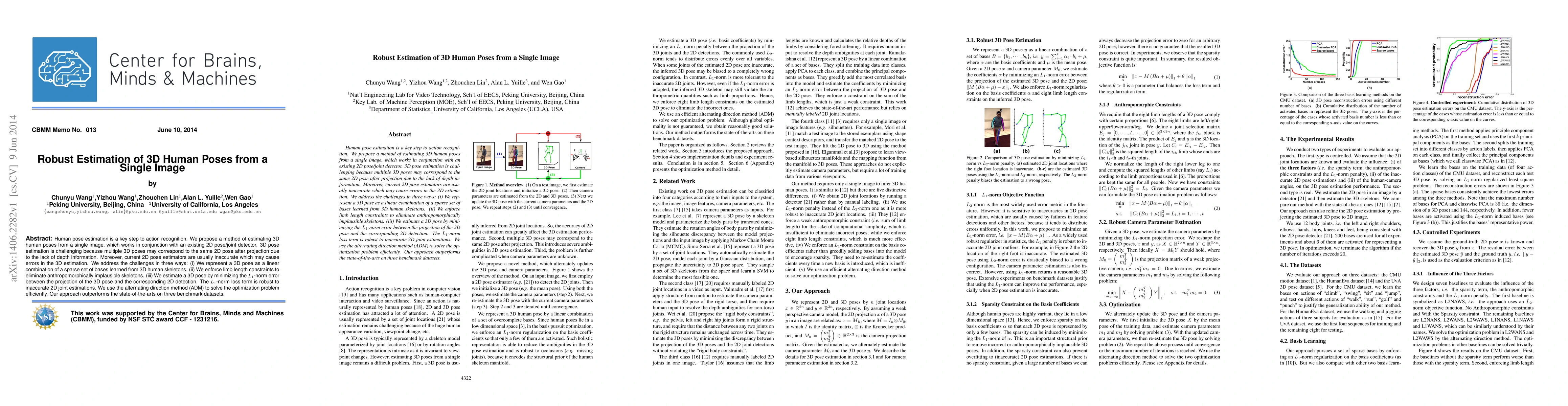 A new method estimates 3D human poses from a single image with improved accuracy and robustness to inaccuracies in existing 2D pose estimators, outperforming state-of-the-art approaches on benchmark datasets.