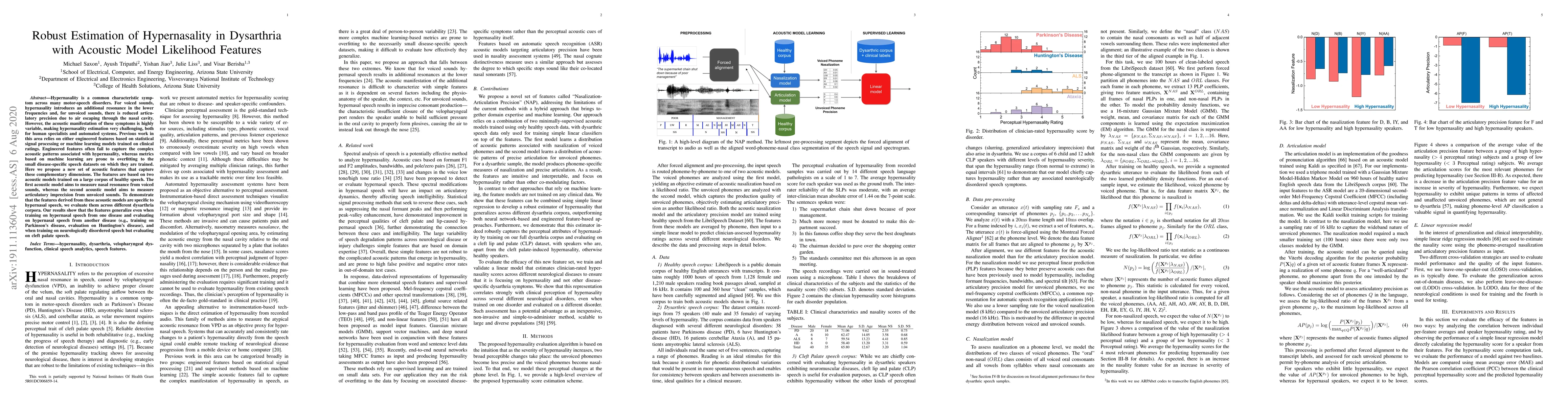 This paper proposes a robust estimation method for hypernasality in dysarthria using acoustic model likelihood features. It introduces two acoustic models to capture nasal resonance and articulatory imprecision, demonstrating their effectiveness across different dysarthria types and generalizability to cleft palate speech.