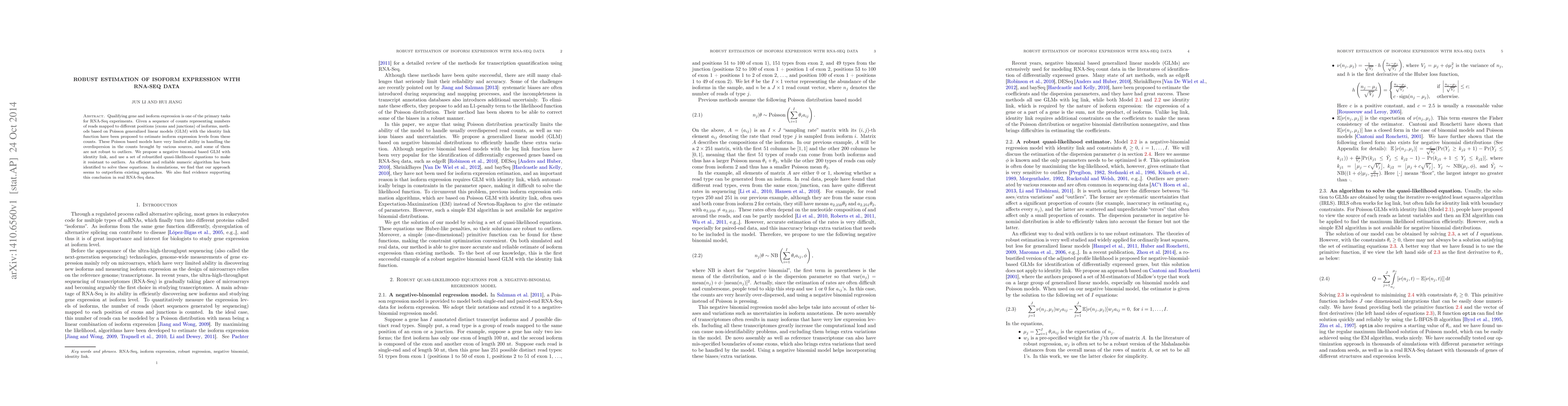 This paper proposes a negative binomial generalized linear model with an identity link to robustly estimate isoform expression from RNA-Seq data. The method is designed to handle overdispersion and outliers, outperforming existing Poisson-based models in simulations and real data.