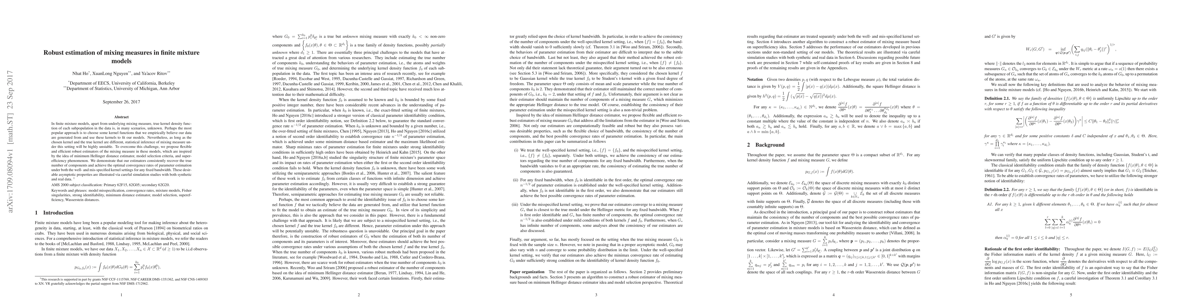 This paper proposes robust estimators for the mixing measure in finite mixture models, addressing the instability caused by discrepancies between chosen and true kernel functions. The proposed estimators achieve consistent recovery of the true number of components and optimal convergence rates, validated through simulations with both synthetic and real data.