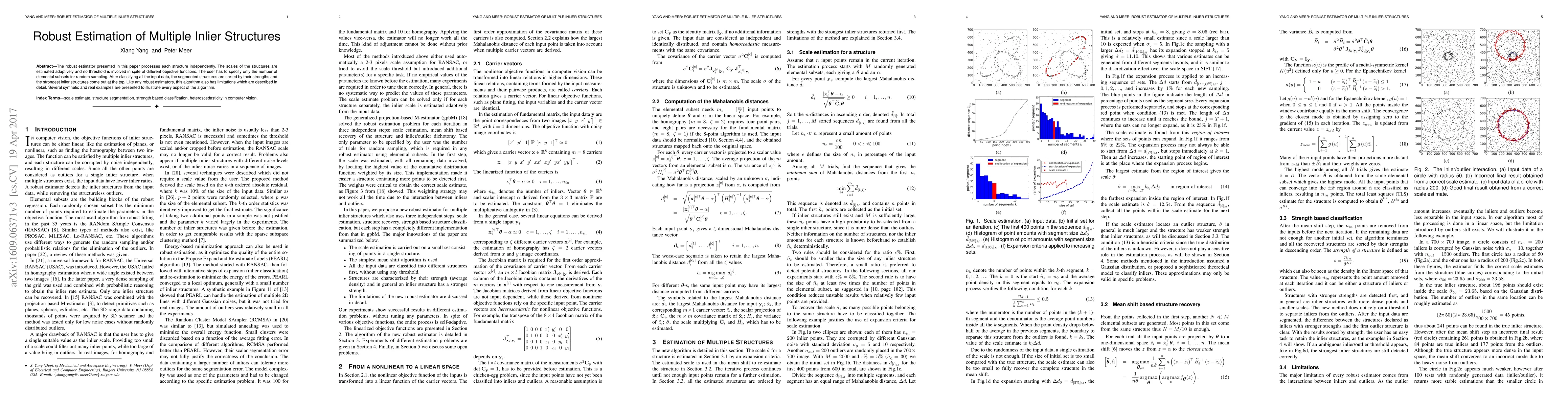 This paper introduces a robust method for estimating multiple inlier structures without needing thresholds, relying on adaptive scaling and user-specified subset sampling. The approach identifies the strongest inlier structures from classified data and presents it with synthetic and real examples.