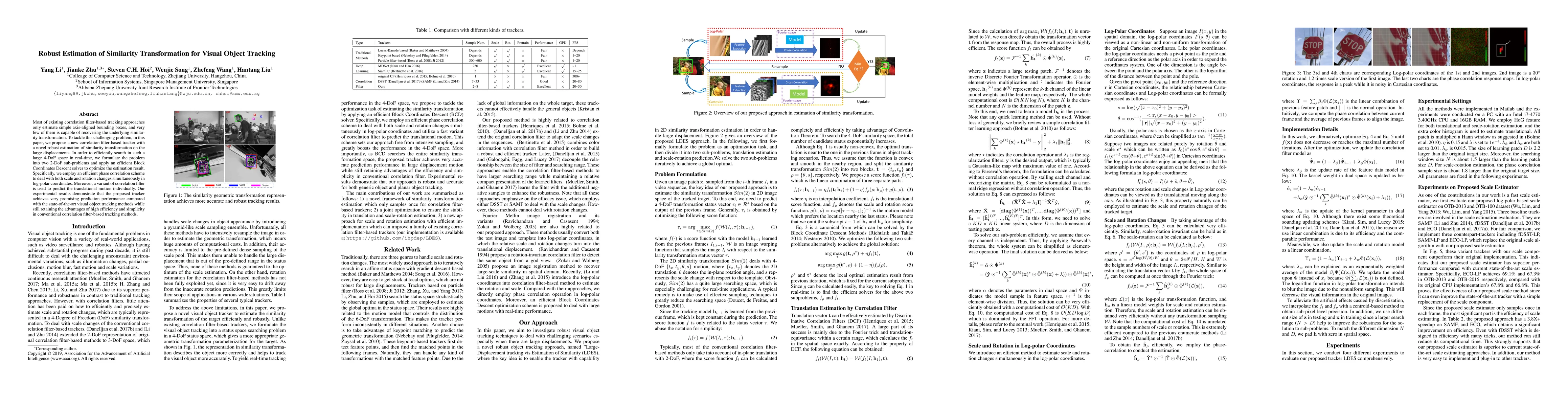 This paper proposes a novel correlation filter-based tracker that robustly estimates similarity transformations for visual object tracking, addressing large displacements and 4-DoF transformations. It efficiently decomposes the problem into two 2-DoF sub-problems, optimizing with a Block Coordinates Descent solver and achieving competitive performance against state-of-the-art methods.