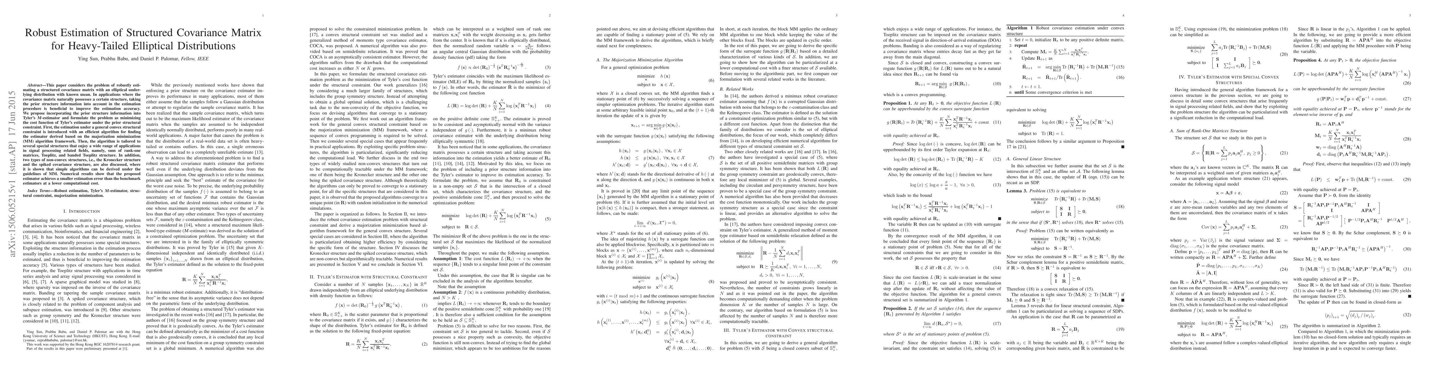 This paper proposes a robust estimator for structured covariance matrices under heavy-tailed elliptical distributions, incorporating prior structural information to enhance accuracy. The method utilizes Tyler's M-estimator within a majorization minimization framework, and is tailored for various structures including rank-one, Toeplitz, and Kronecker forms, demonstrating improved performance over benchmark estimators.