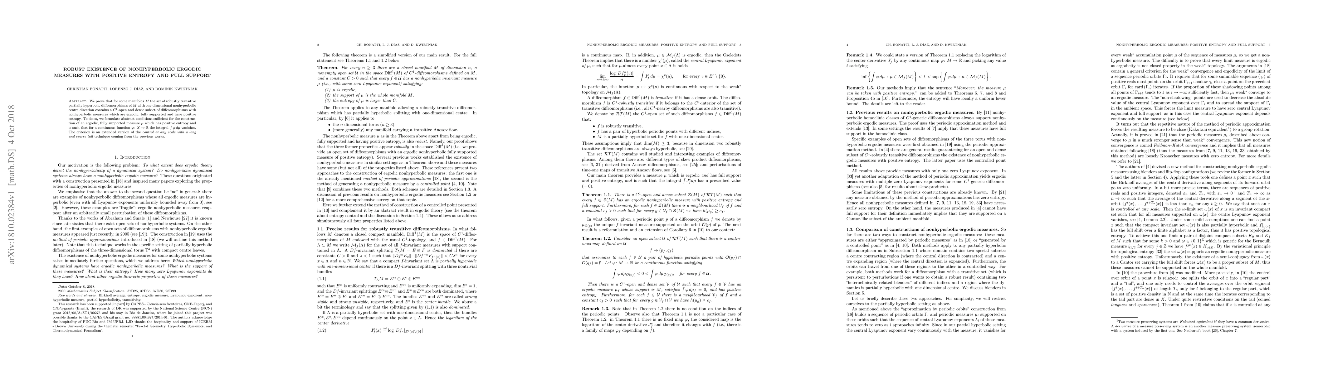 We prove that for some manifolds $M$ the set of robustly transitive partially hyperbolic diffeomorphisms of $M$ with one-dimensional nonhyperbolic centre direction contains a $C^1$-open and dense subset of diffeomorphisms with nonhyperbolic measures which are ergodic, fully supported and have positive entropy. To do so, we formulate abstract conditions sufficient for the construction of an ergodic, fully supported measure $\mu$ which has positive entropy and is such that for a continuous function $\phi\colon X\to\mathbb{R}$ the integral $\int\phi\,d\mu$ vanishes. The criterion is an extended version of the control at any scale with a long and sparse tail technique coming from the previous works.