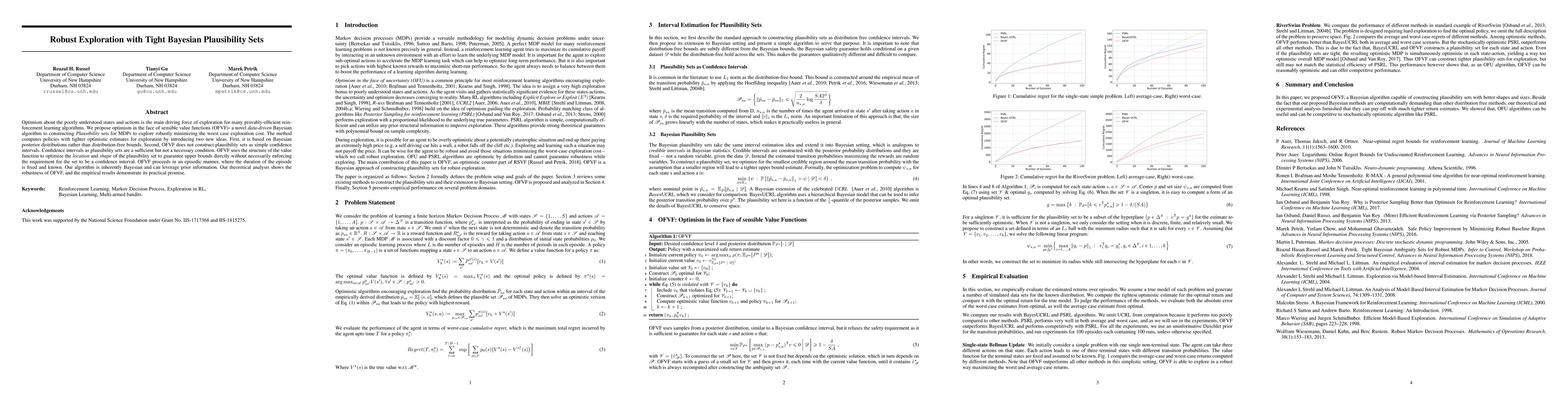 This paper introduces a novel Bayesian algorithm called Optimism in the Face of Sensible Value Functions (OFVF) for robust exploration in reinforcement learning. OFVF constructs tighter plausibility sets for Markov Decision Processes by leveraging Bayesian posterior distributions and optimizing the set's shape, rather than relying on simple confidence intervals. The method demonstrates theoretical robustness and practical promise through empirical results.