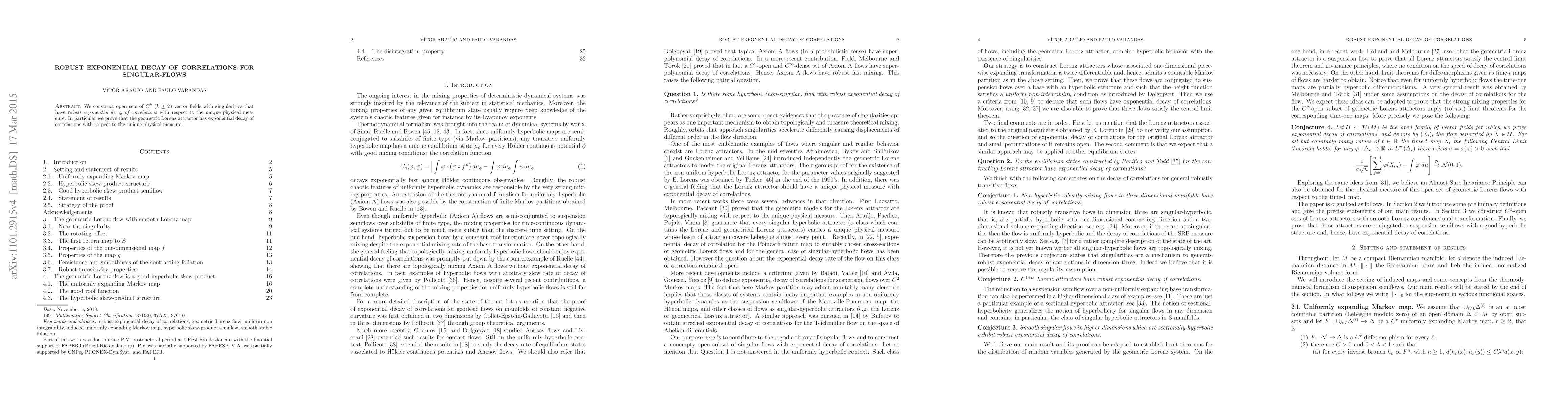 This paper constructs open sets of smooth vector fields with singularities that exhibit robust exponential decay of correlations concerning their physical measures. Specifically, it demonstrates this property for the geometric Lorenz attractor.