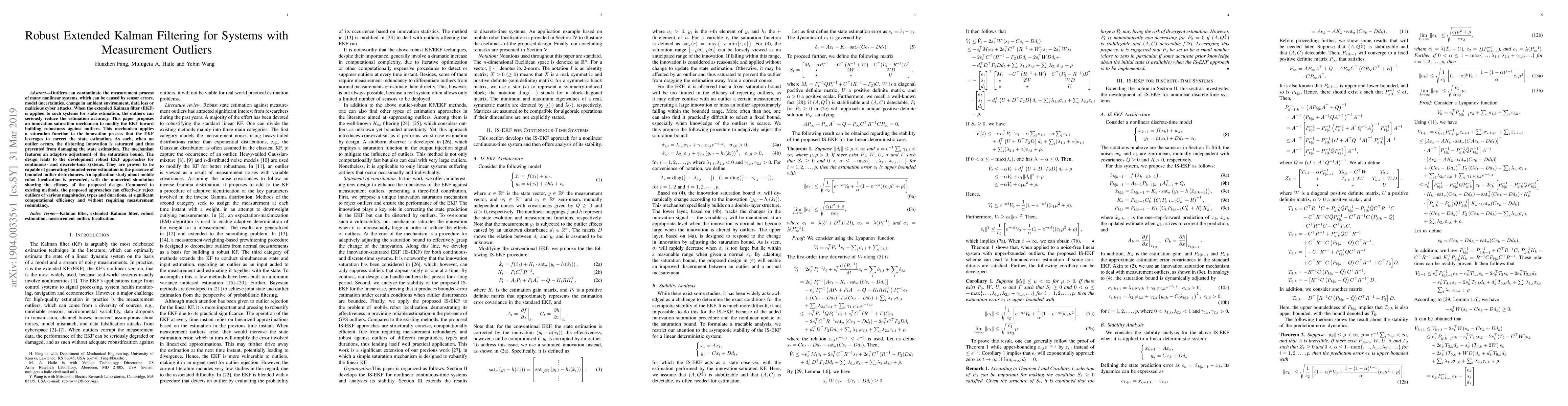 This paper proposes a novel innovation saturation mechanism for Extended Kalman Filtering to robustly estimate system states in the presence of measurement outliers, achieving bounded-error estimation with significant computational efficiency.