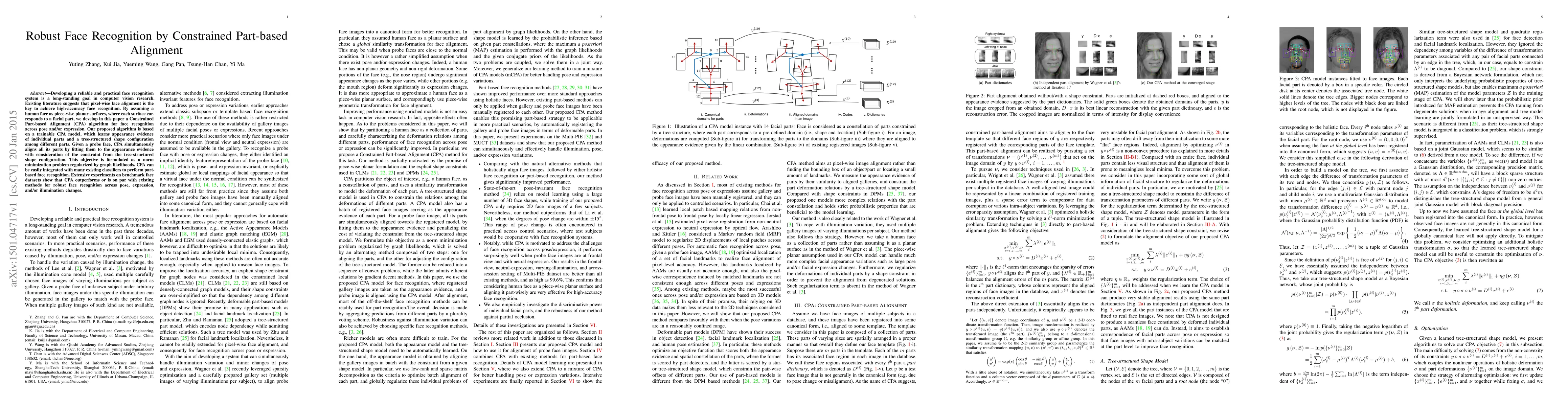 This paper proposes a Constrained Part-based Alignment (CPA) algorithm for robust face recognition, which aligns facial parts based on learned appearance evidence and a tree-structured shape configuration, achieving superior performance across pose, expression, and illumination variations compared to existing methods. CPA integrates seamlessly with various classifiers for enhanced face recognition accuracy.