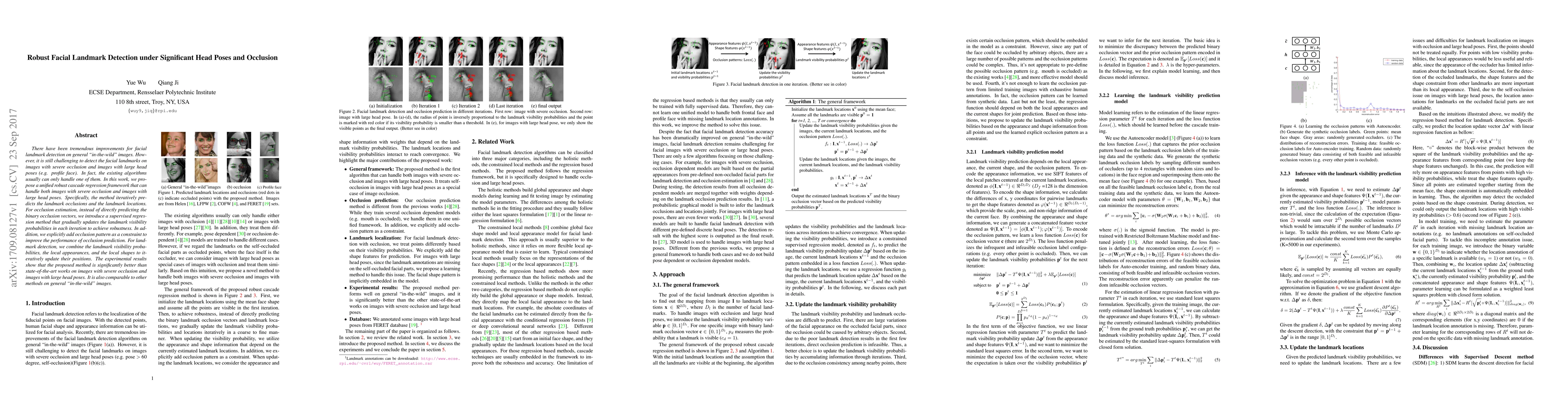 This paper proposes a unified robust cascade regression framework for detecting facial landmarks under severe occlusion and large head poses. The method iteratively predicts landmark occlusions and locations, using a supervised regression approach to update landmark visibility probabilities, and incorporates occlusion patterns to improve performance. Experimental results show superior performance on challenging conditions compared to state-of-the-art methods.