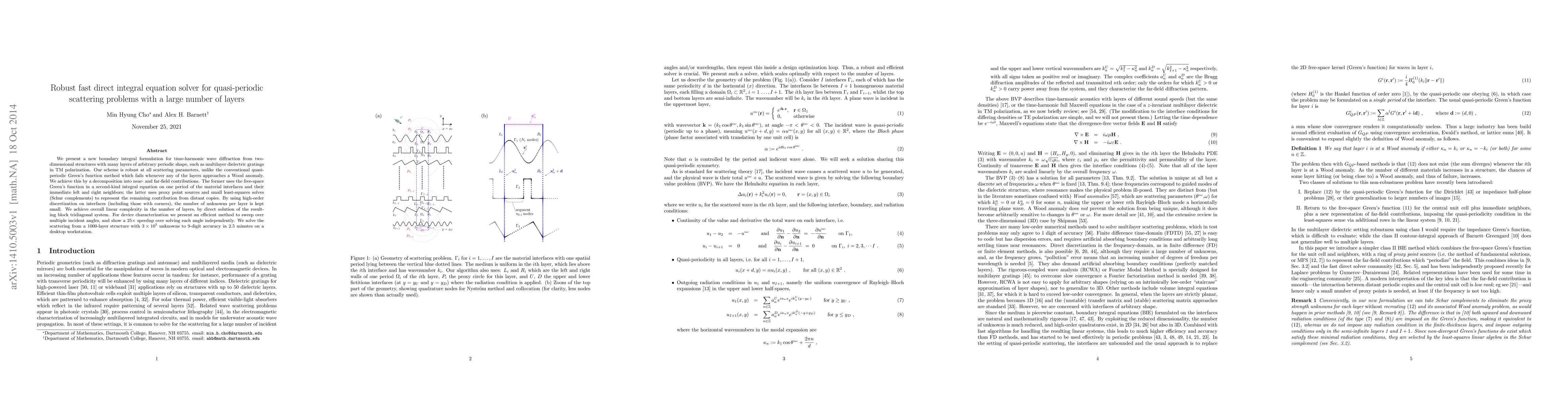 This paper introduces a robust and efficient solver for quasi-periodic scattering problems involving many layers, achieving linear complexity and a 25x speedup over conventional methods. The method decomposes the problem into near- and far-field contributions, using high-order discretization and direct solution of a block tridiagonal system.
