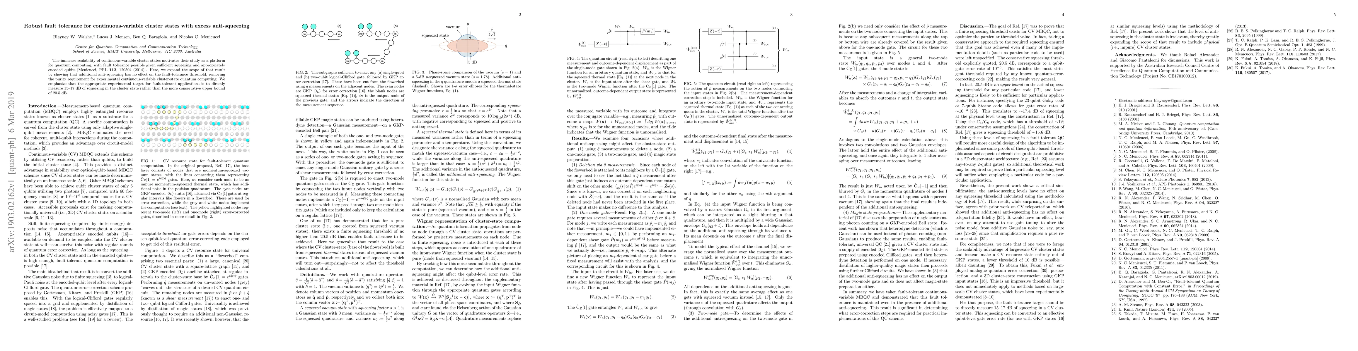 This paper demonstrates that continuous-variable cluster states can achieve robust fault tolerance in quantum computing without the need for purity, as additional anti-squeezing does not affect the fault-tolerance threshold. The recommended experimental target is 15-17 dB of squeezing instead of the previously suggested upper bound of 20.5 dB.